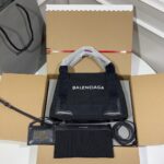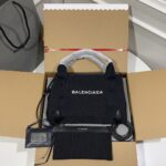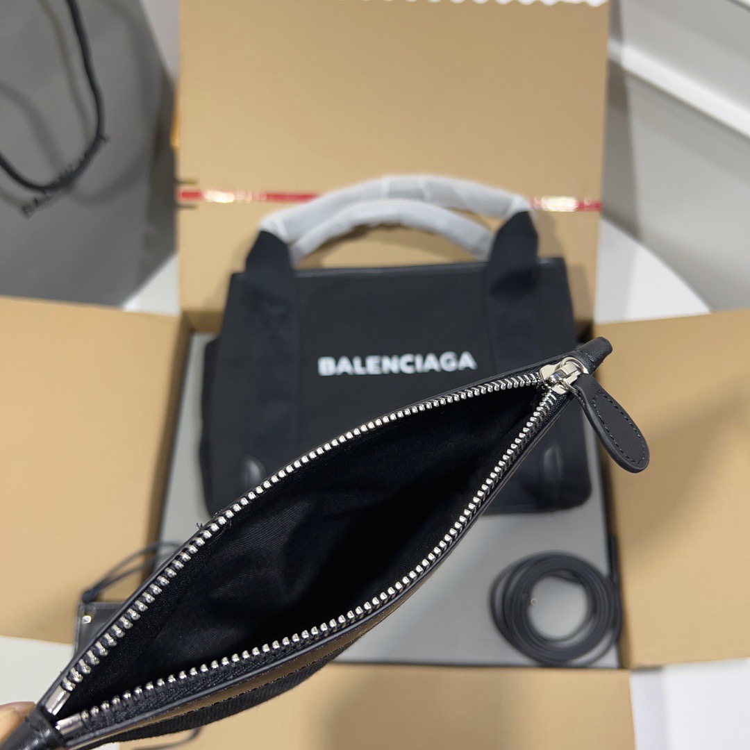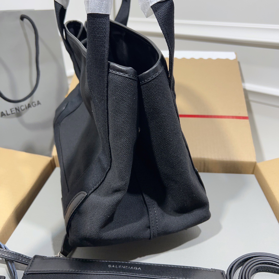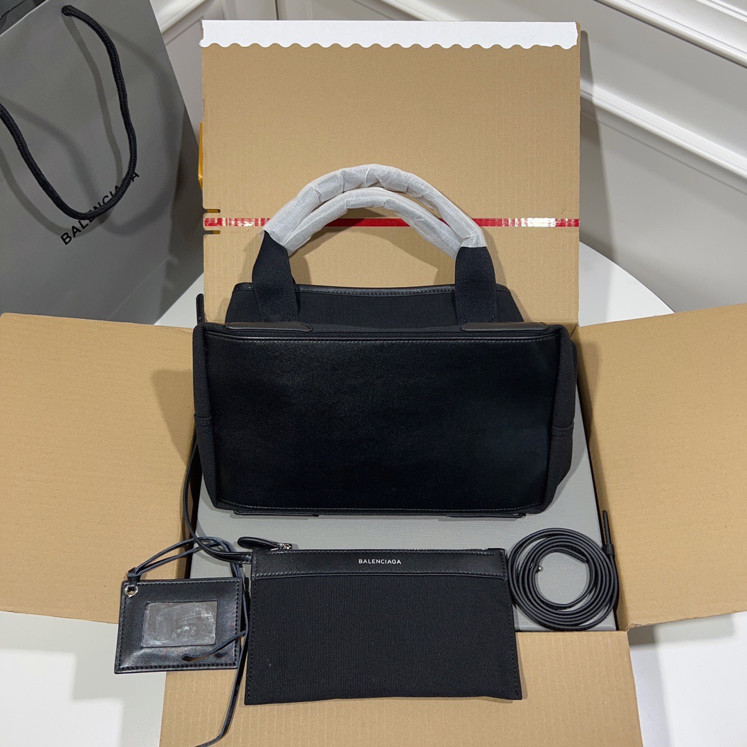 Real product photos. Black with a single line of letters 🔥🔥🔥. BALENCIAGA Spring/Summer 2017 new arrival: NAVY CABAS mother-and-daughter shopping bag 😎. Made from imported wear-resistant cotton canvas ✌🏻 with leather trim. Features snap buttons on both sides to casually change the bag’s shape 🎁. It keeps your belongings organized and easy to access, making it perfect for commuting. Stylish and generous. Comes with a makeup mirror/long shoulder strap.