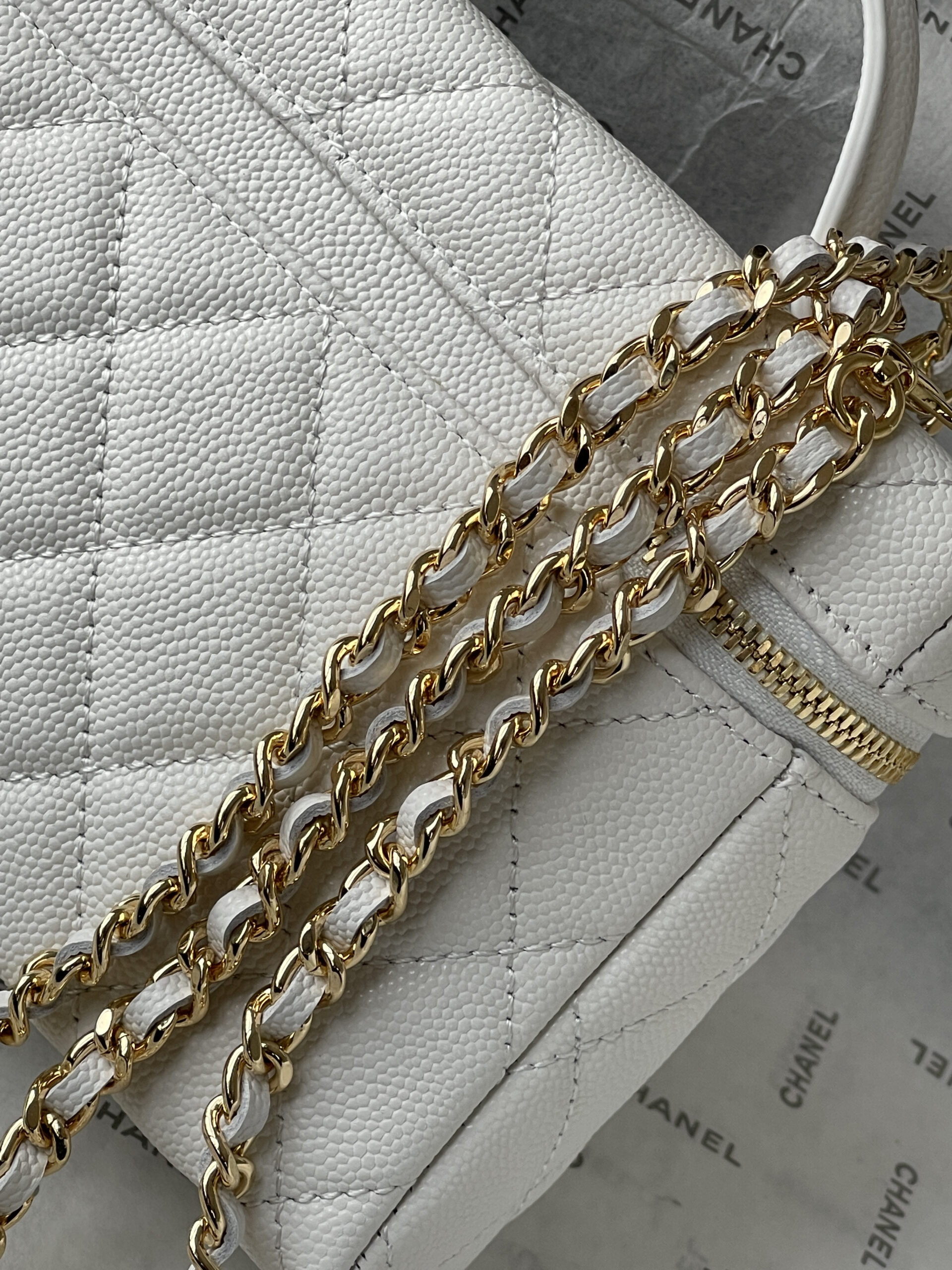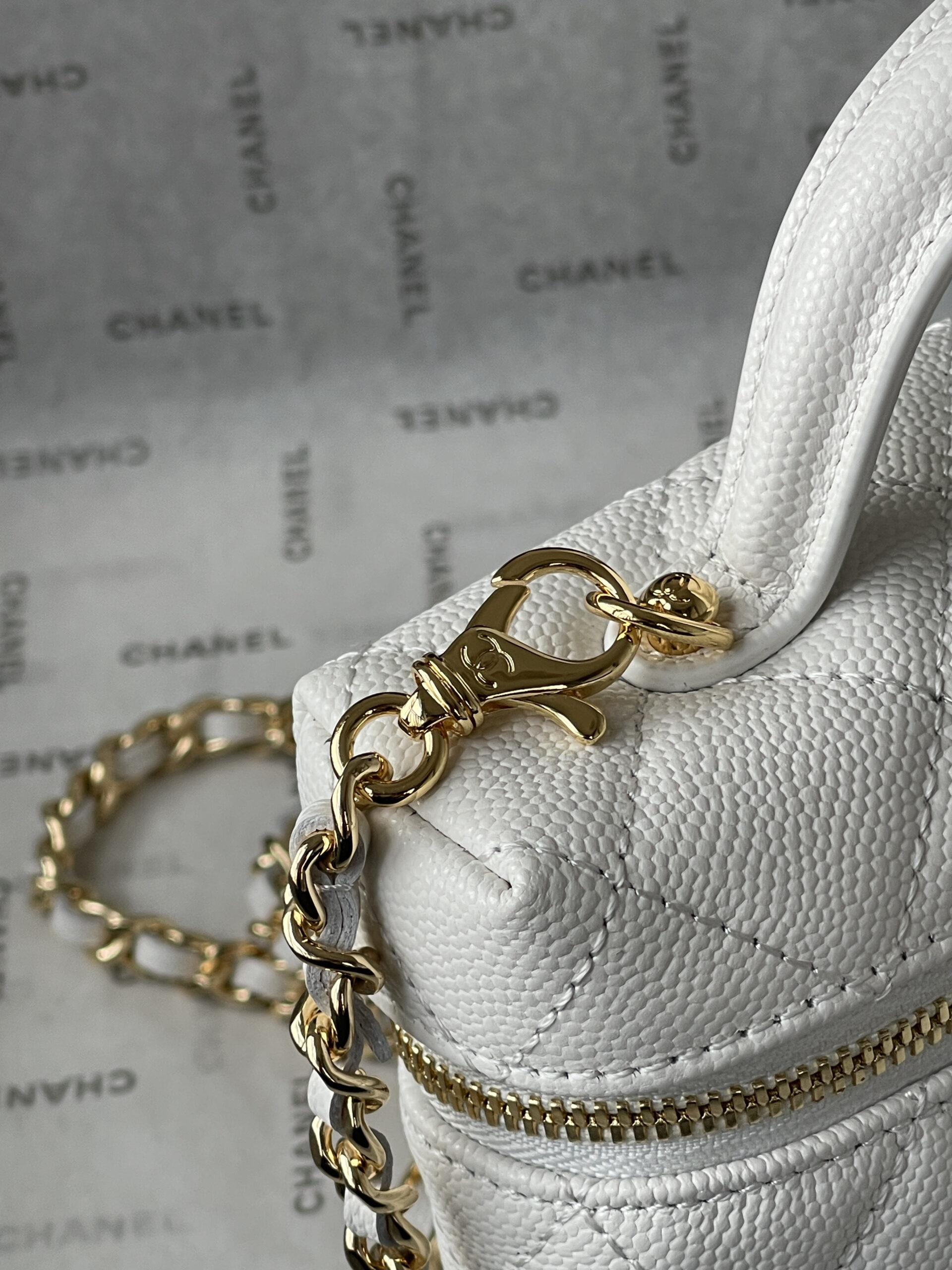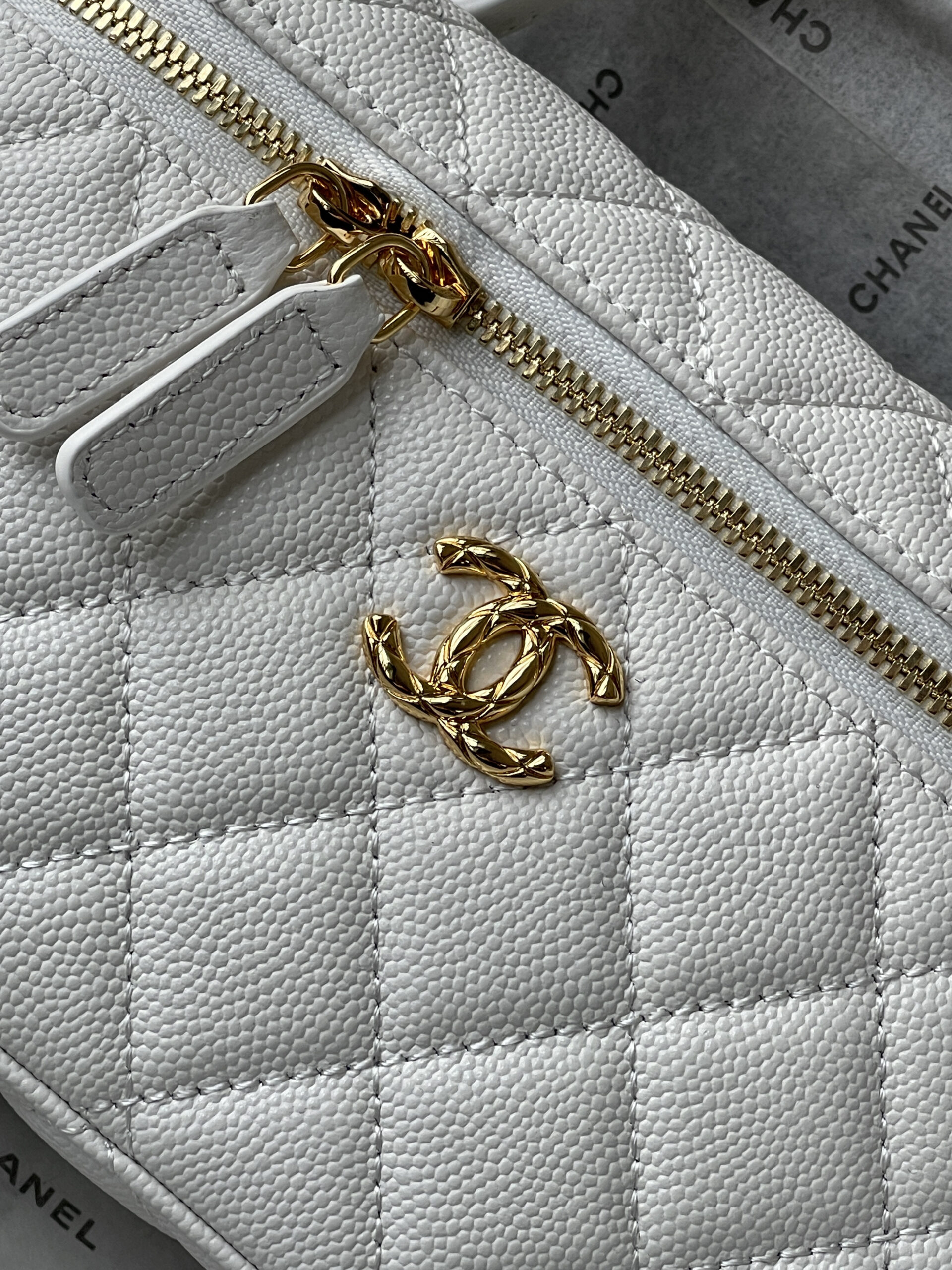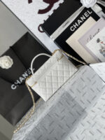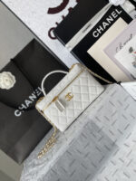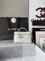 Chanel 26C LP Lunch Box Bag, classic white quilted pattern + light gold hardware, made of grained calfskin leather with a delicate and durable texture. Compact and square design, can be carried by hand or crossbody, with a versatile chain shoulder strap. The iconic double-C logo on the front is highly recognizable, and the zipper closure ensures extra security. The interior space can hold daily essentials like your phone, lipstick, and more—perfect for both commuting and going out! The 26C collection is a popular Chanel line, practical and collectible—a must-have for fashion lovers!