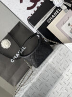 Chanel 🌈 25C Lunch Box Bag AP4386. Calfskin leather with metal chain ⛓️ design style. Double-C logo. Compact size that easily fits your phone and daily essentials. Whether paired with casual wear or formal attire, it can be effortlessly styled. Choose simple clothing to let the bag become the focal point of your overall look. A perfect combination of elegance and practicality.