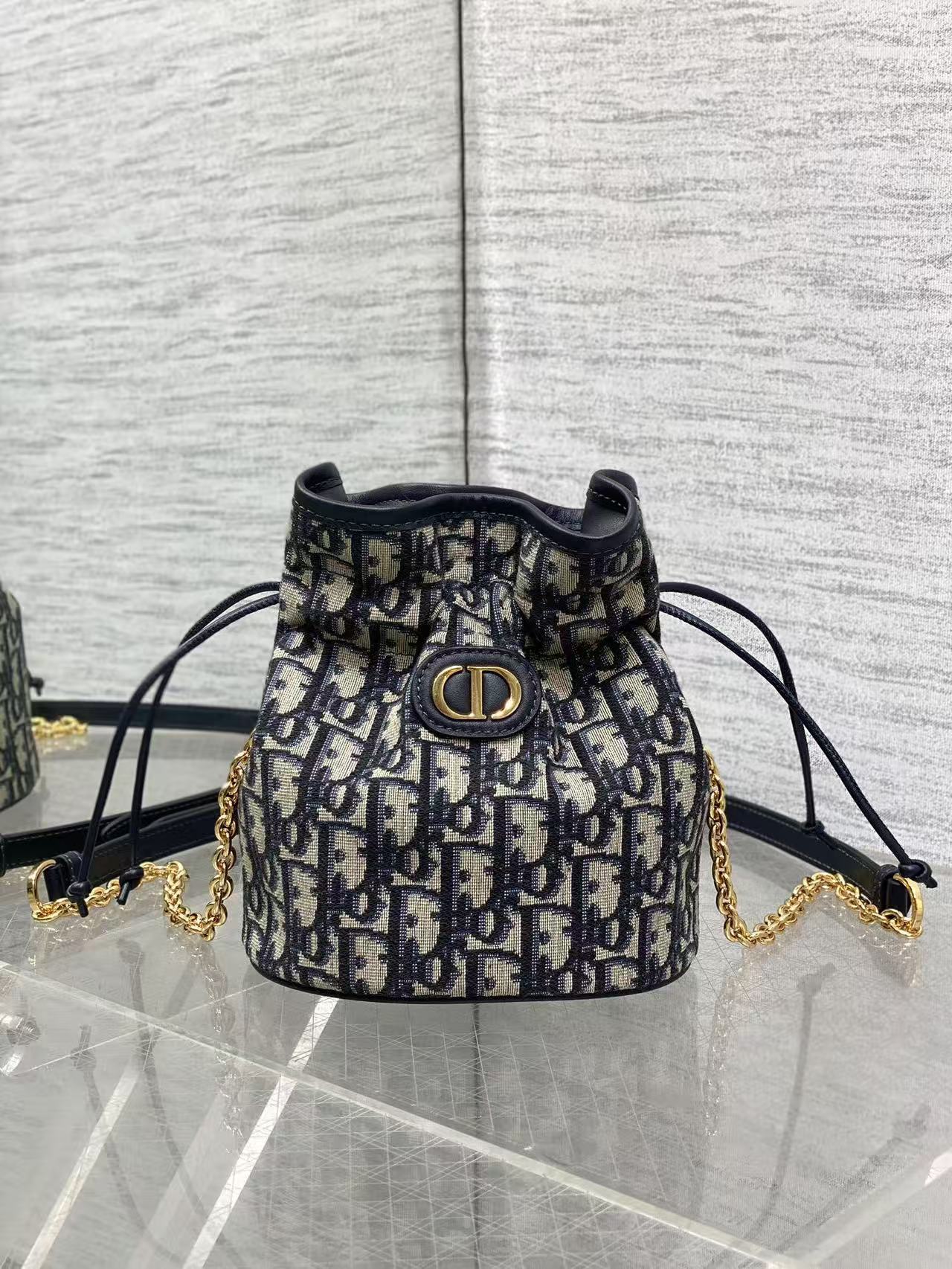 Classic blue Oblique fabric, delicate chain, bucket bag shape—combines all lovely elements, definitely a hit. Spacious capacity holds all daily essentials. Beautiful and practical.