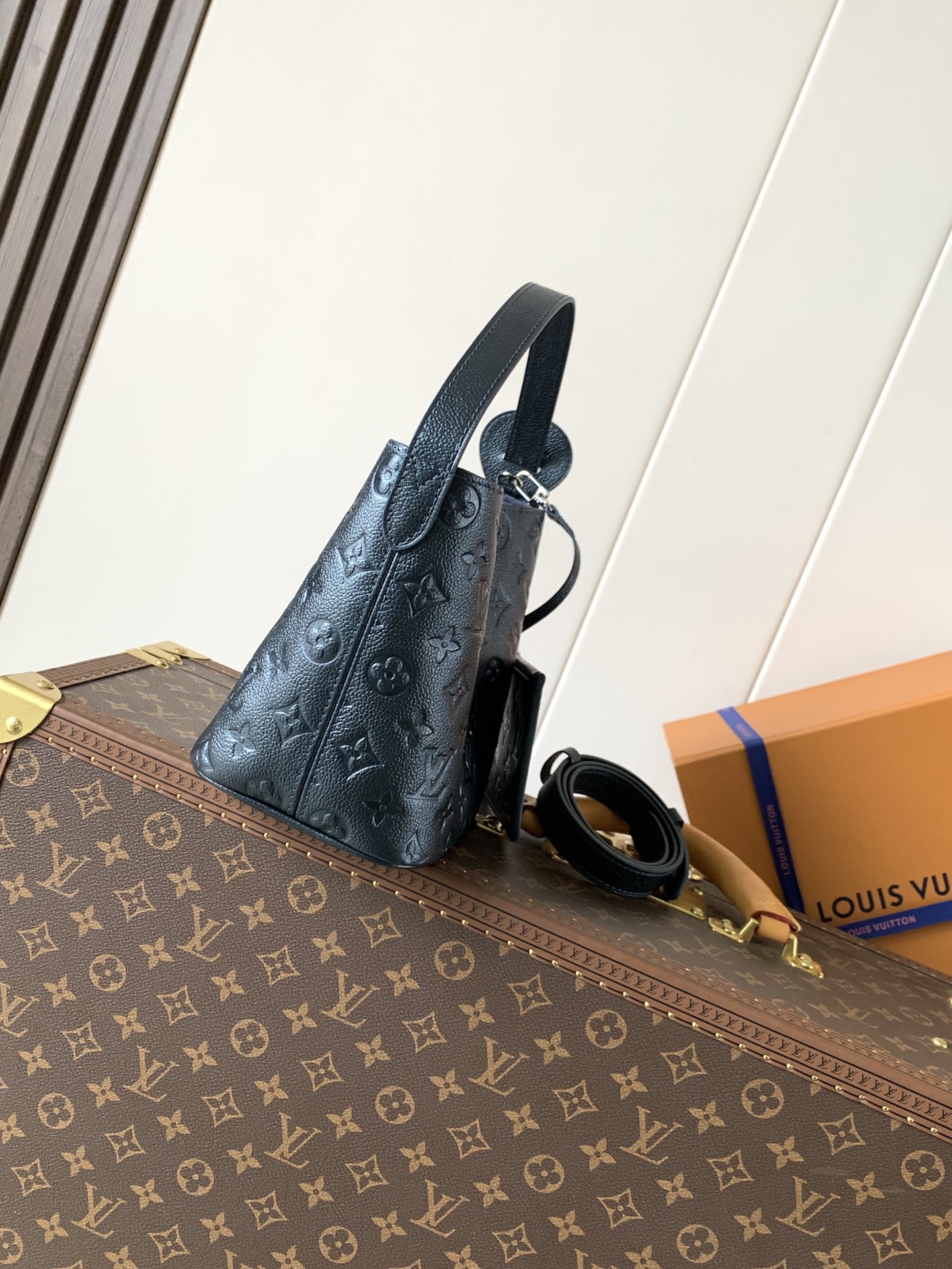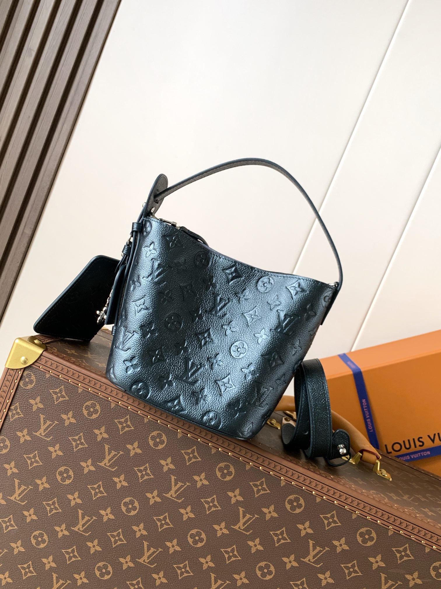 This All In BB handbag blends modern design with an elegant silhouette and ample space.Crafted from Monogram Empreinte leather with a sleek bucket shape, it features an iconic name tag and metallic padlock for refined details, while the adjustable handle pays tribute to the brand’s trunk-making heritage.