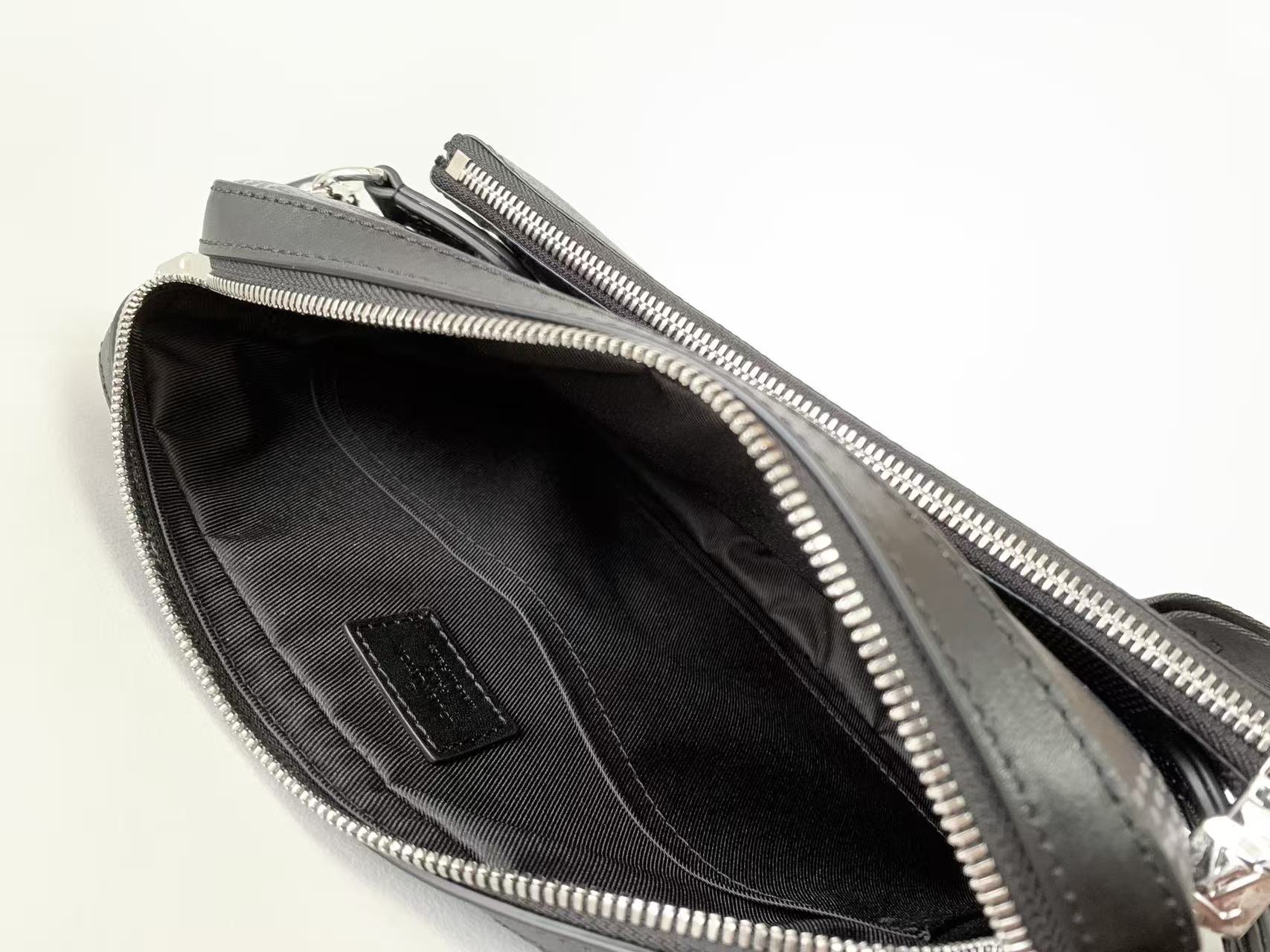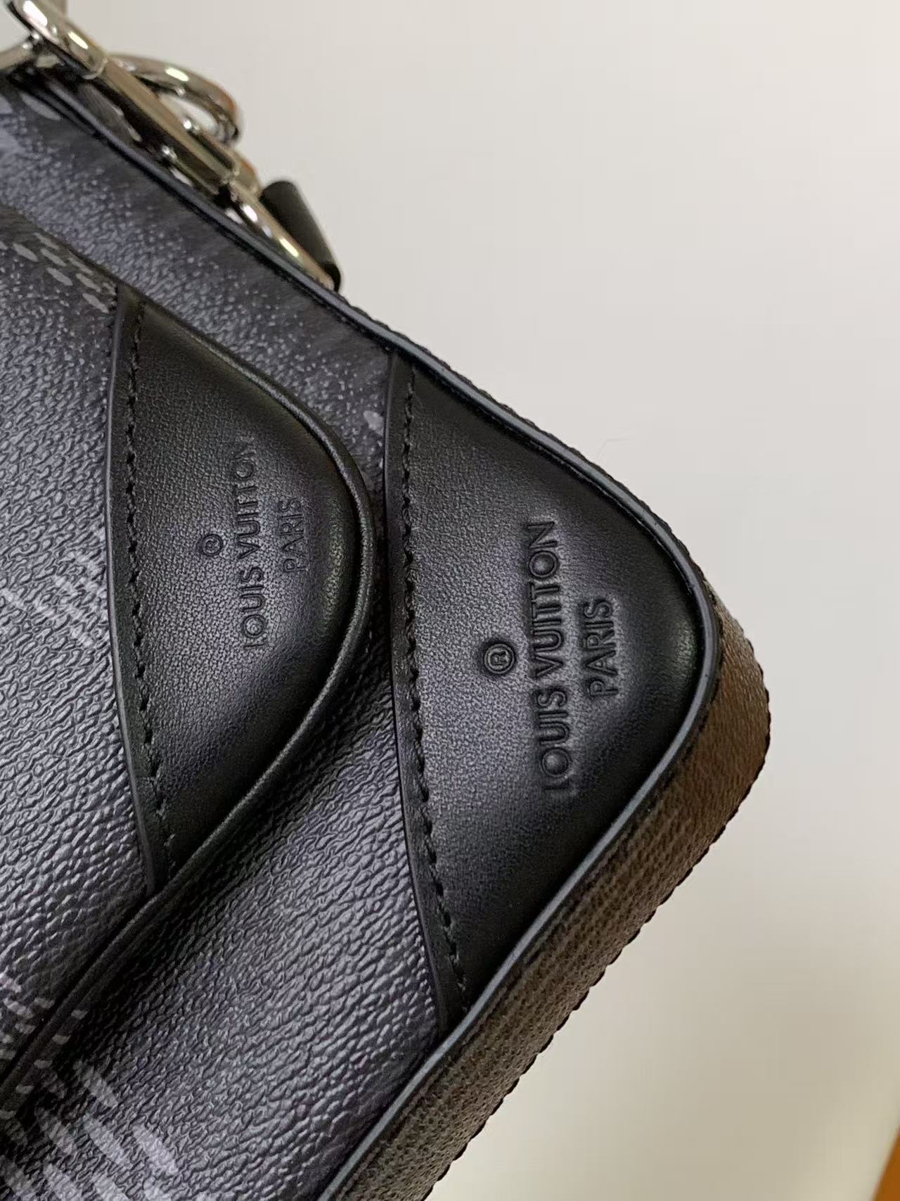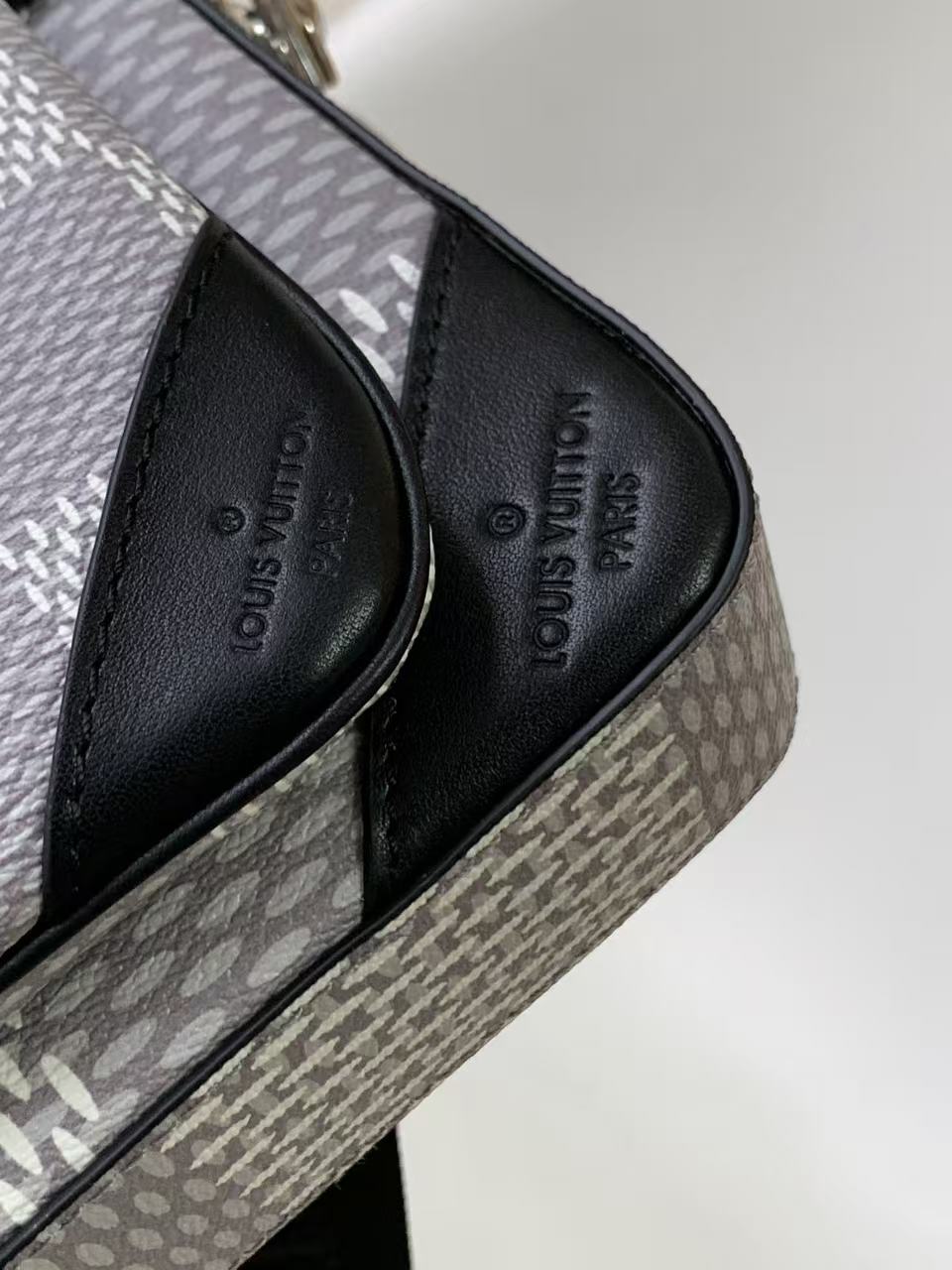 Louis Vuitton The messenger bag is crafted from Monogram Eclipse canvas and Monogram Eclipse Reverse canvas. The iconic tone-on-tone grey patterns highlight the lines of this versatile piece. In addition to the functions of a traditional crossbody bag, it also comes with a detachable zippered pouch and a coin pocket attached to the strap. Dimensions: 25.0 x 18.5 x 7.0 cm