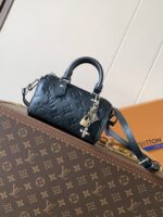 This Nano Speedy comes in a highly wearable shade, suitable for both daily and evening looks. It features signature Monogram embossed leather, adorned with classic Louis Vuitton details including a padlock and Monogram flowers, finished with detachable genuine leather trim. The spacious interior holds daily essentials such as a compact wallet.