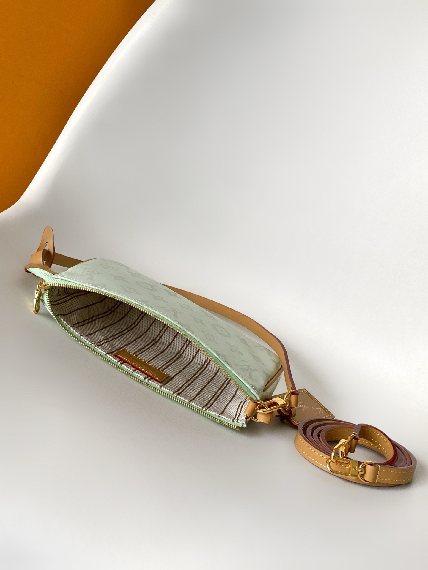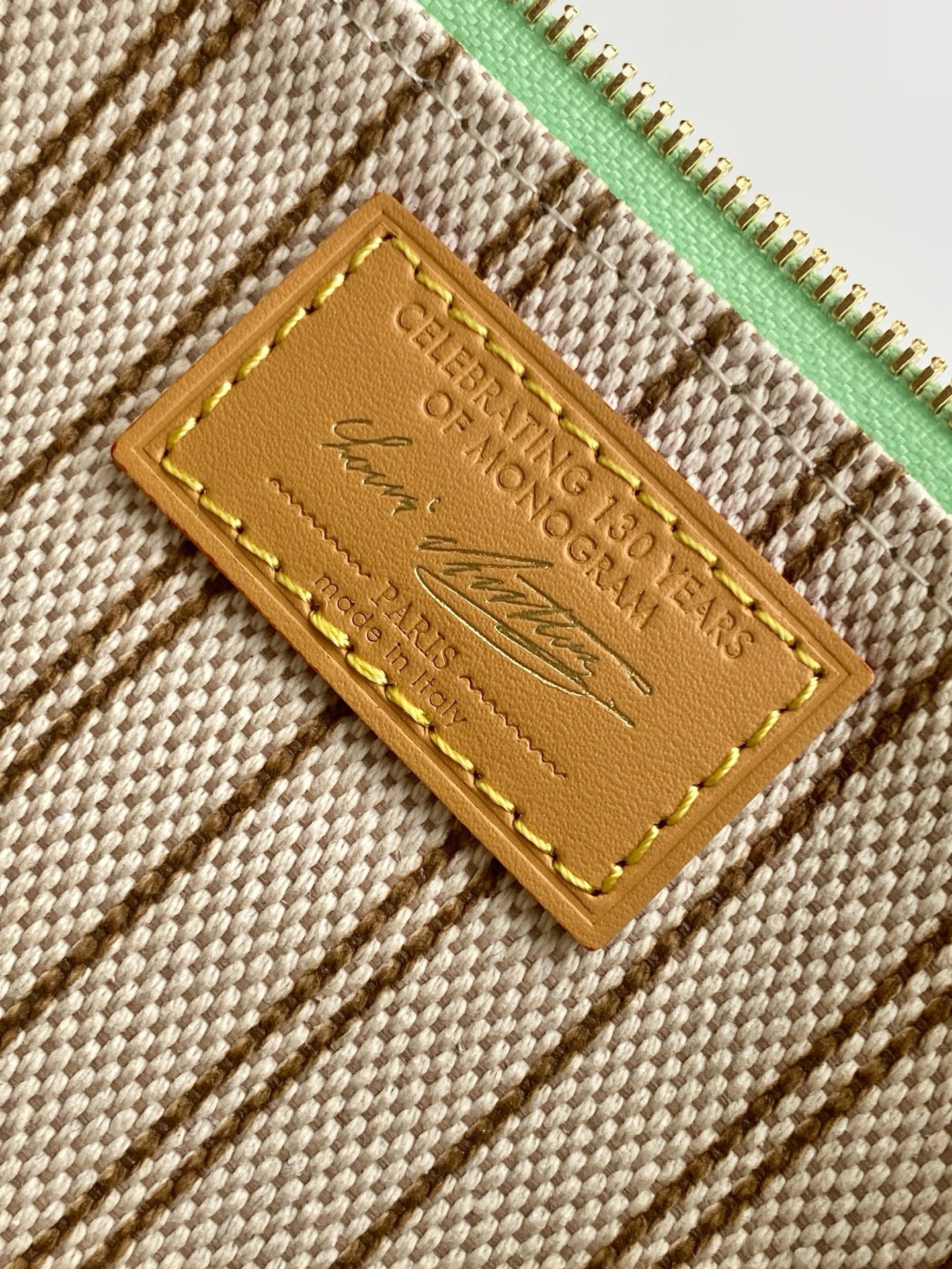 This Pochette Accessories bag is designed to celebrate the 130th anniversary of the Louis Vuitton Monogram pattern.Monogram Origine canvas with smooth cowhide leather trims and detachable address tag highlights the brand’s travel heritage