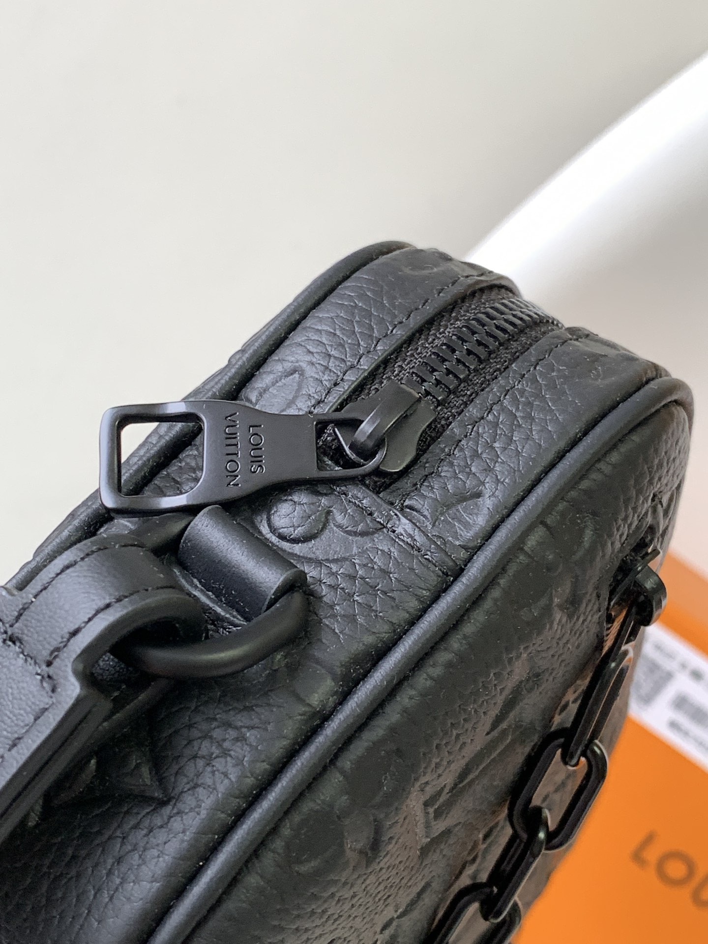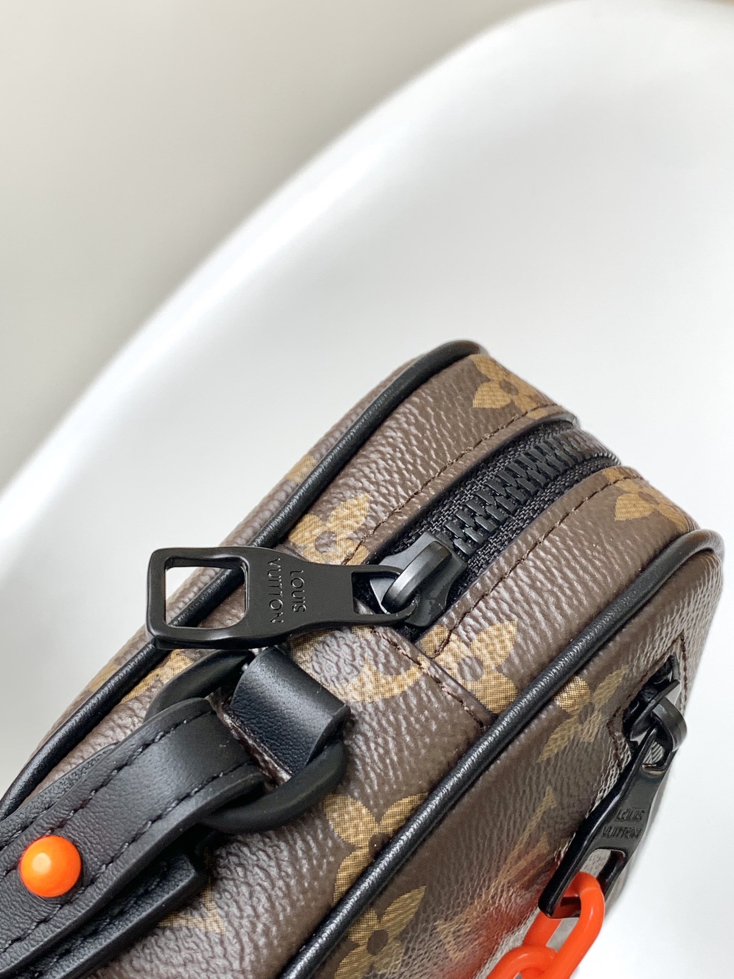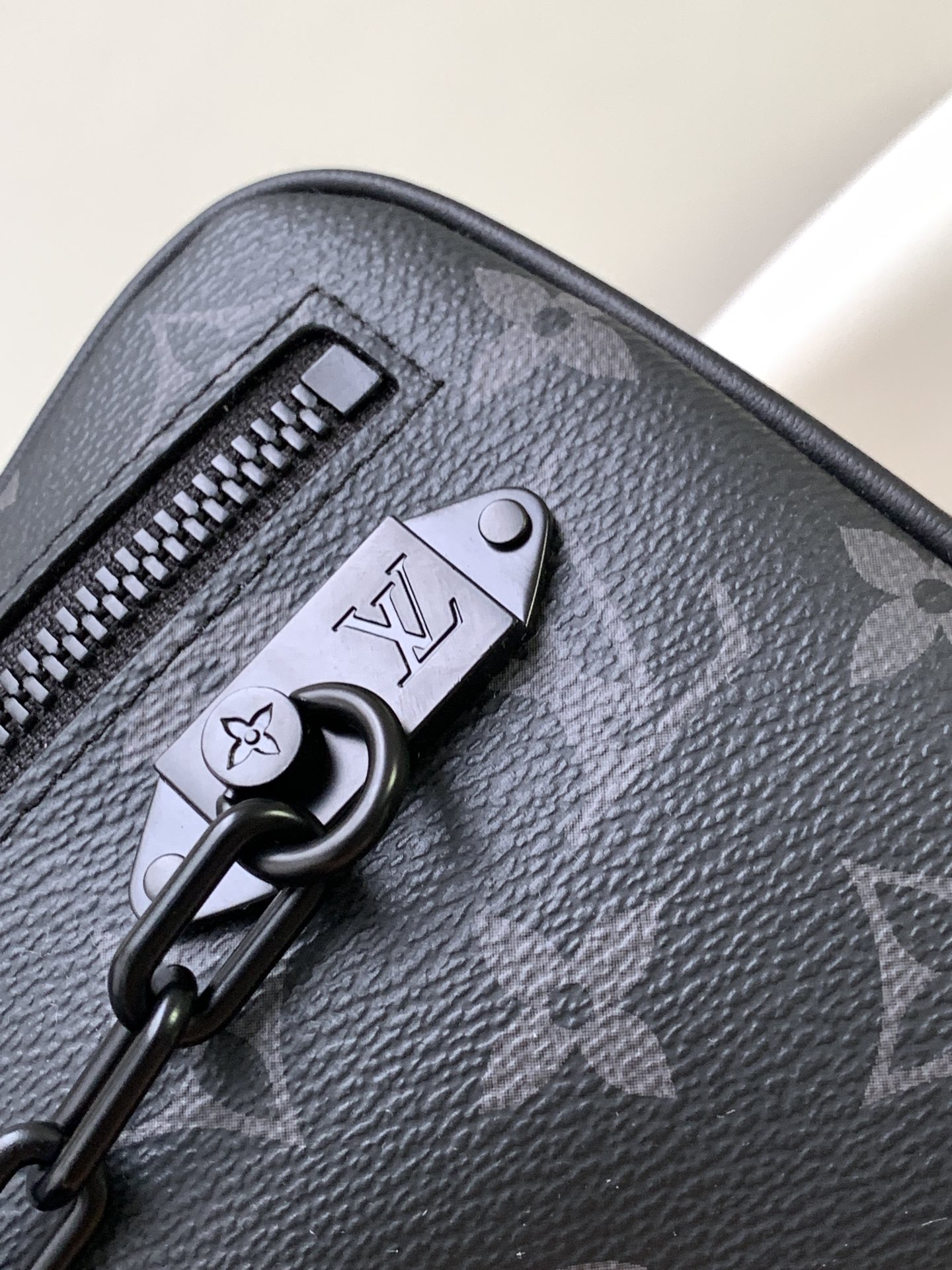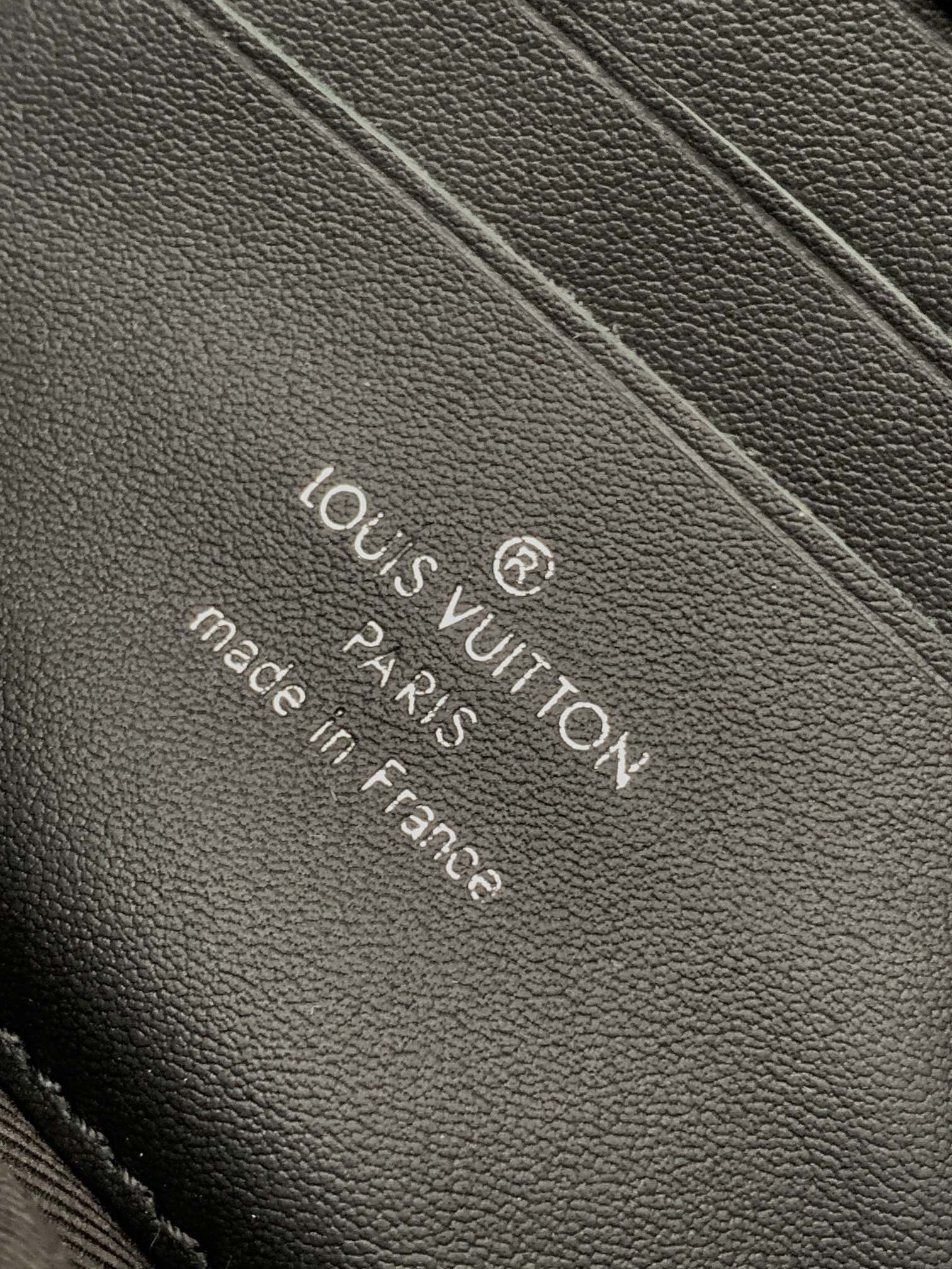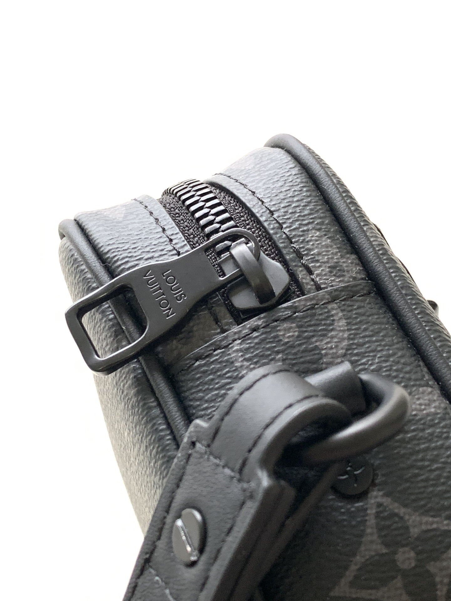 This Pochette Volga clutch designed by Virgil Abloh is unveiled at the Spring Summer show.Monogram Eclipse canvas with a slim chain attached to the front zip pocket and detachable wristlet.Easily switches between clutch and wallet.