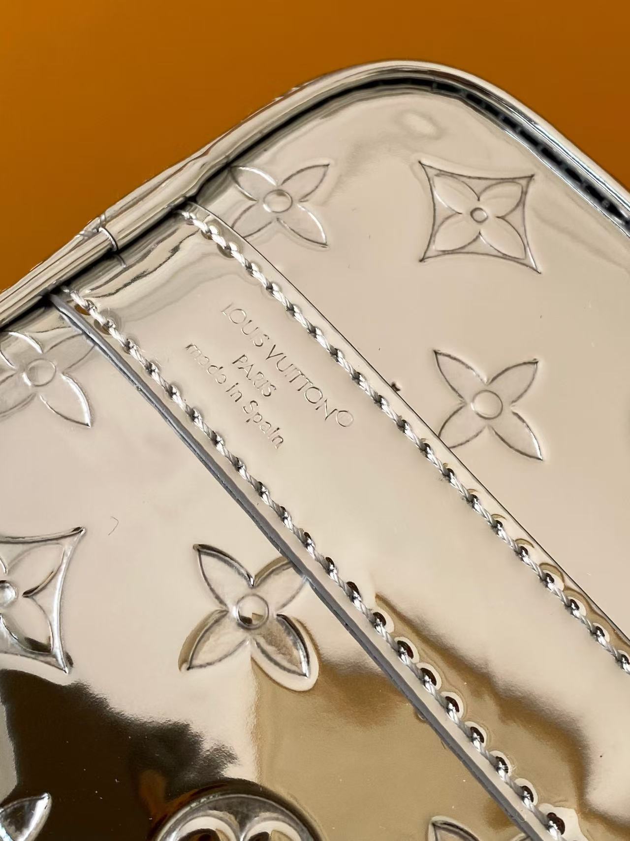 Louis Vuitton The single Keepall Bandoulière 25 handbag is rendered in a striking colourway with Monogram Miroir coated canvas. The mirror effect and Monogram embossing create an illusory metallic texture. The textile lining continues the same colourway. The detachable and adjustable shoulder strap enables comfortable and flexible carrying.