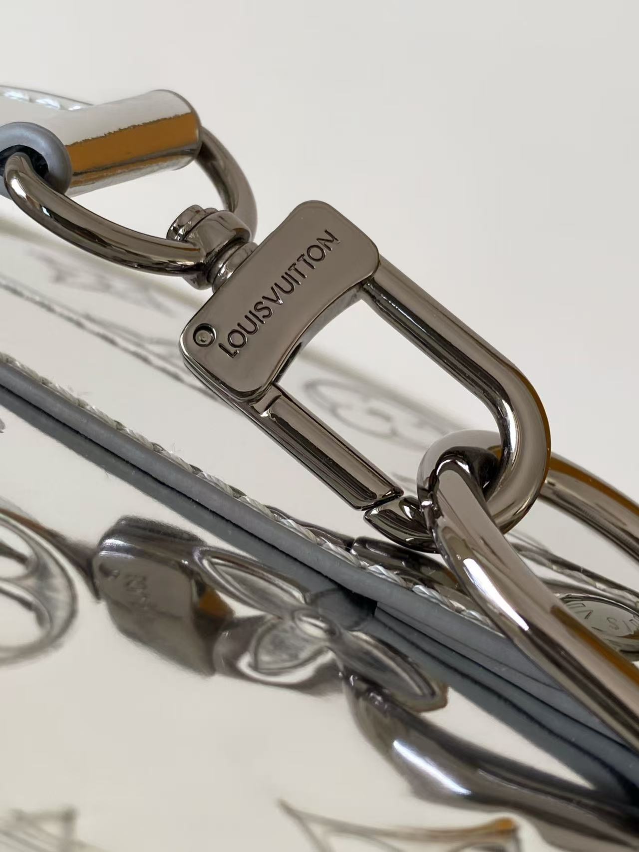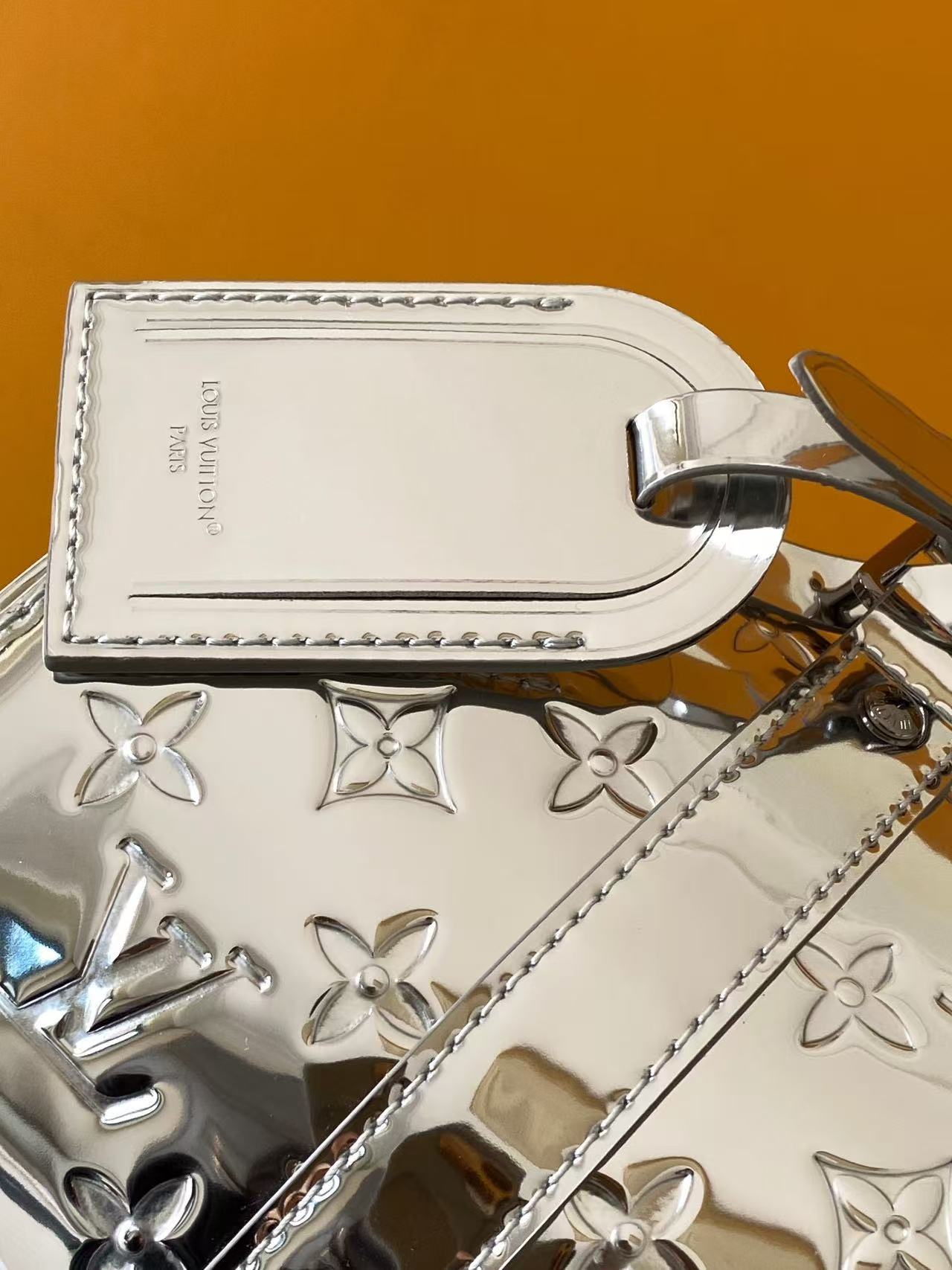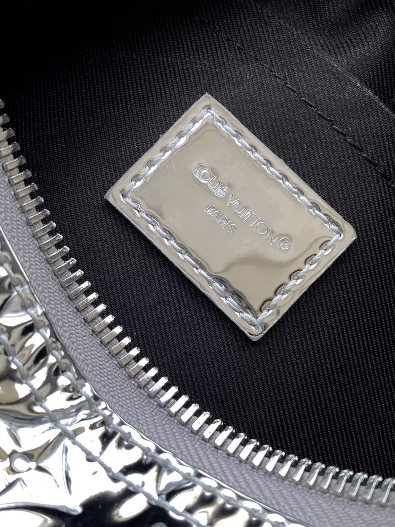 Louis Vuitton The single Keepall Bandoulière 25 handbag is rendered in a striking colourway with Monogram Miroir coated canvas. The mirror effect and Monogram embossing create an illusory metallic texture. The textile lining continues the same colourway. The detachable and adjustable shoulder strap enables comfortable and flexible carrying.