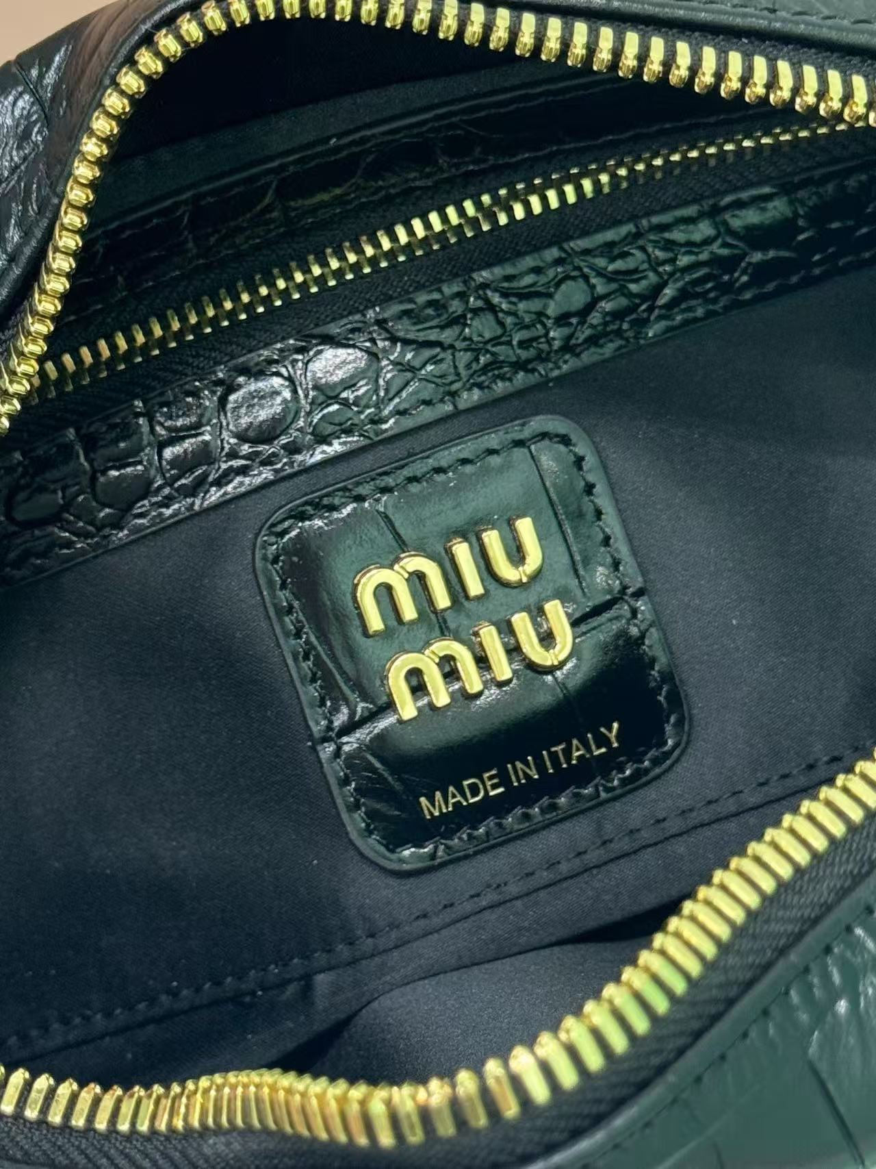 Premium imported calfskin leather, featuring Miu Miu’s distinctive Matelassé pattern. The bag has a refined, structured, and three-dimensional shape.
