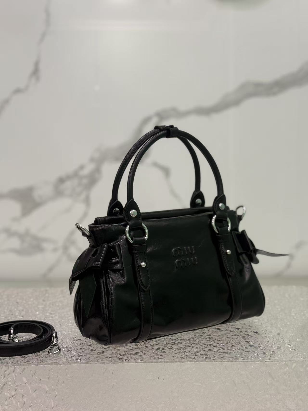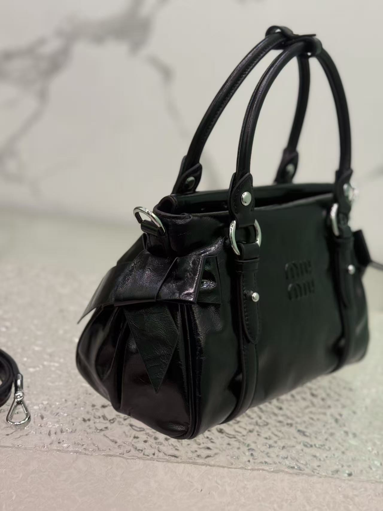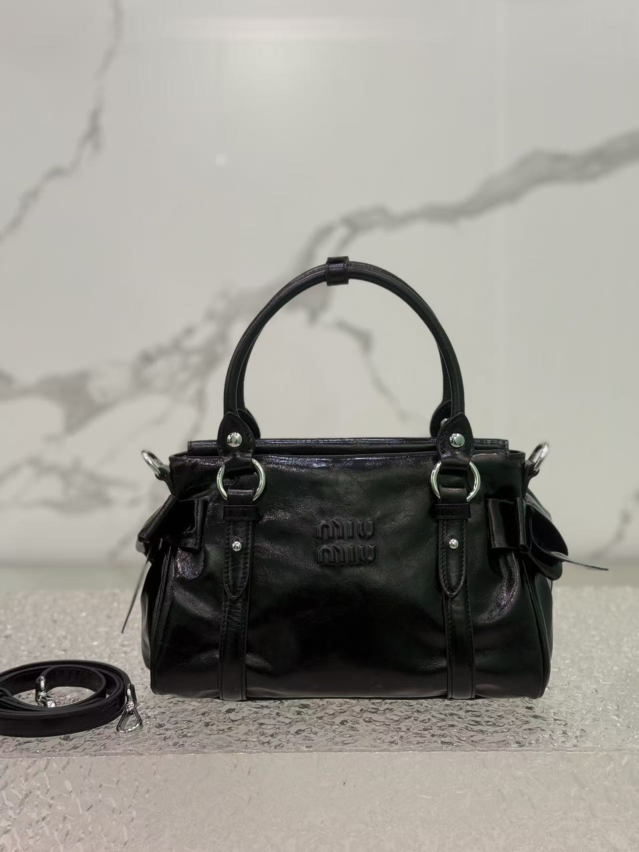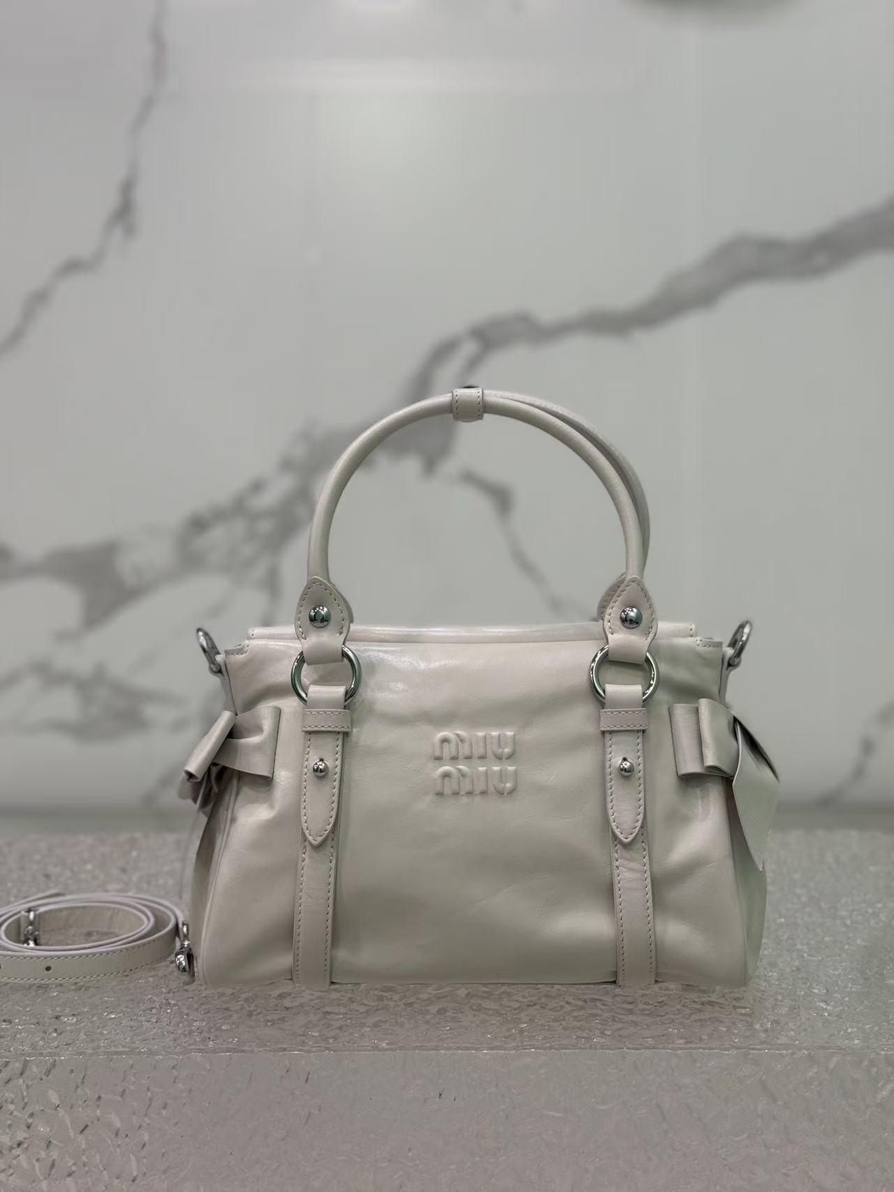 A classic reissue of Miu’s original style, featuring vintage oil-waxed leather with a luxurious ambiance and full sweet-cool vibe.