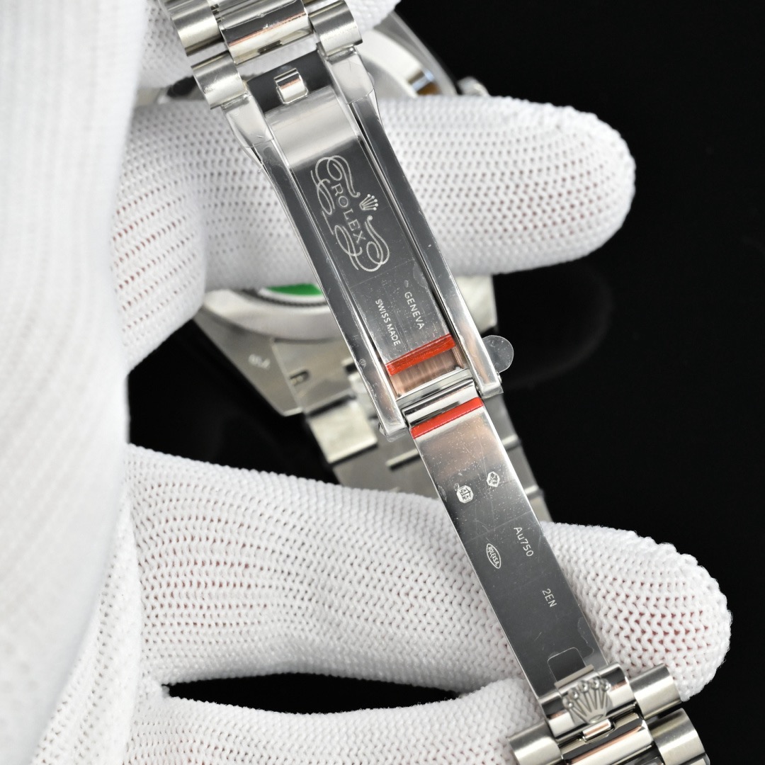 Dual Display: Features an arched day window at 12 o’clock and a date window with a Cyclops lens at 3 o’clock, ensuring clear and legible information display. 🎮