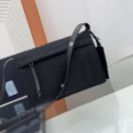 This shoulder bag is crafted from unique lined nylon, featuring a leather shoulder strap and a back pocket. Metal hardware adds a touch of brilliance, creating an overall look that is understated, luxurious, and versatile. The only difference is the non-detachable strap, offering a more minimalist design while maintaining the same style. 🙊🙊 If you love it, grab yours now! It’s a unisex model and another timeless best-seller. 👏👏
