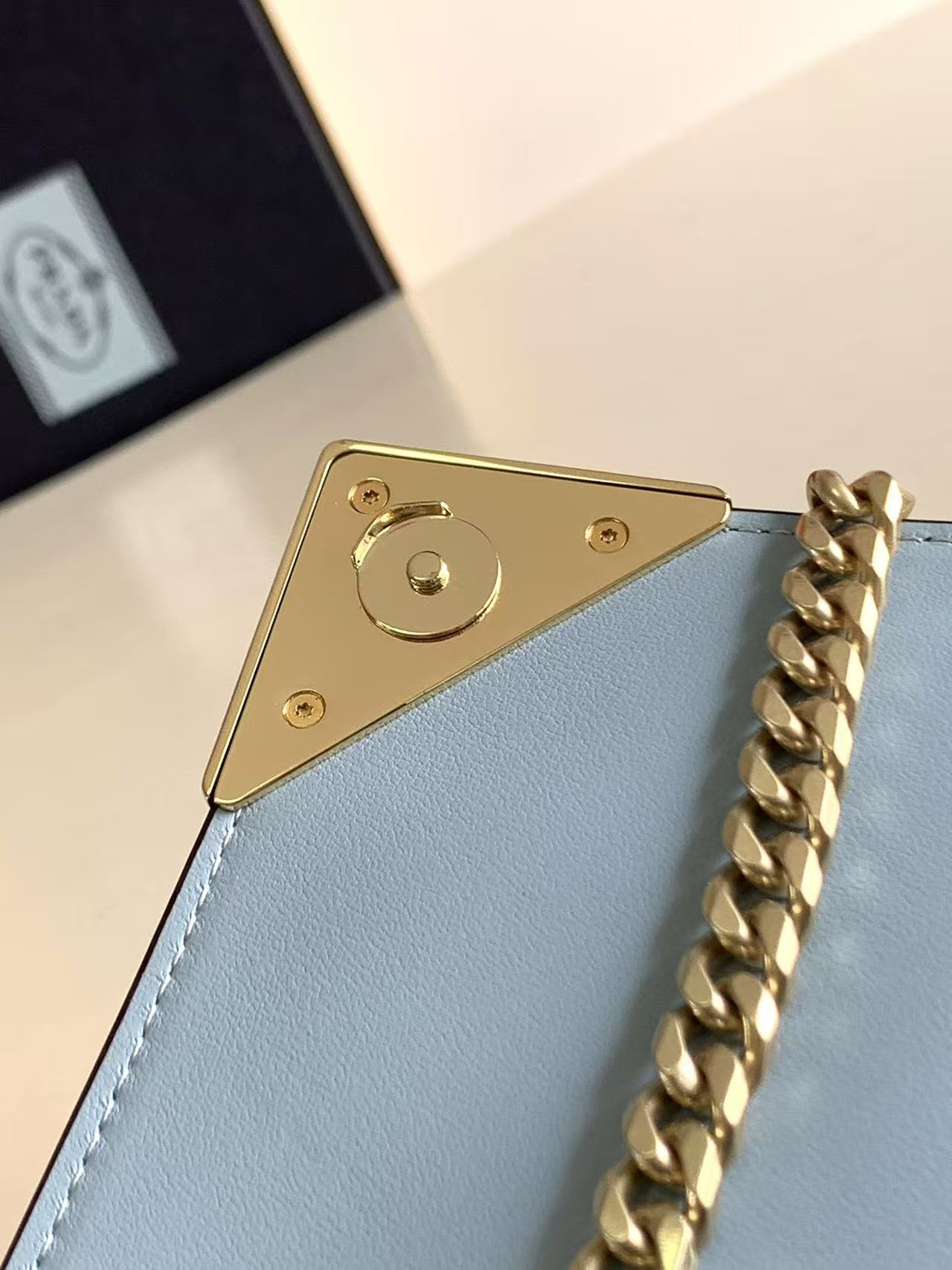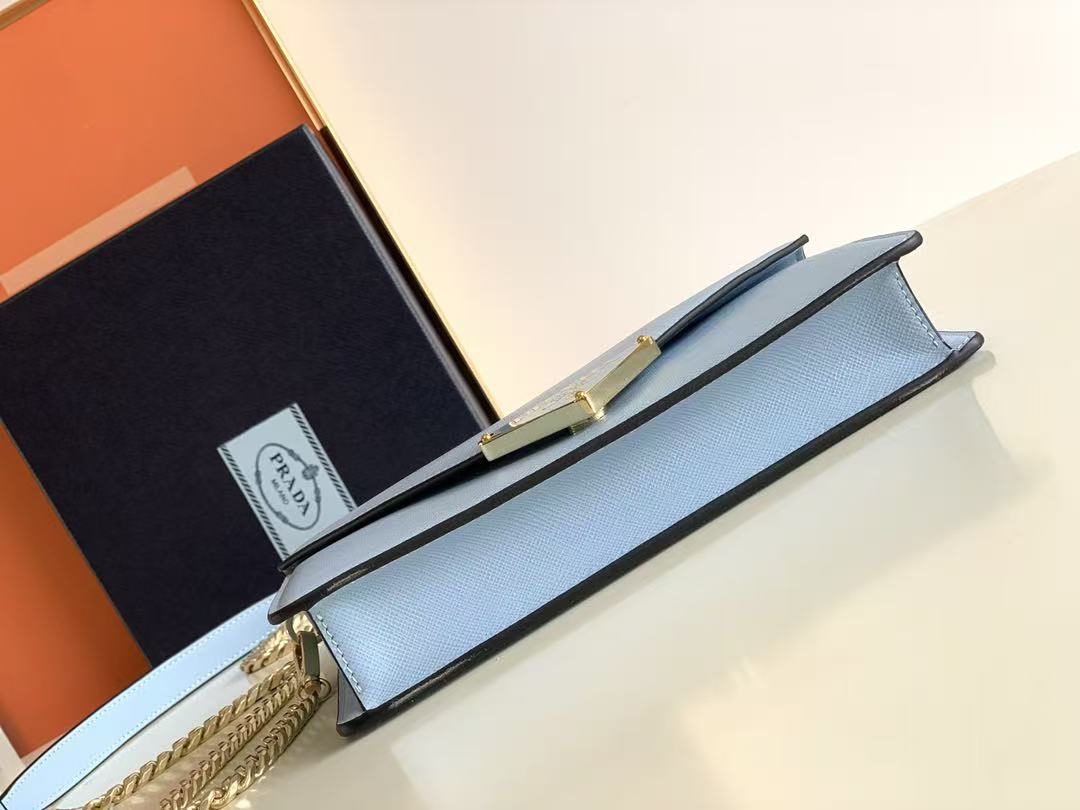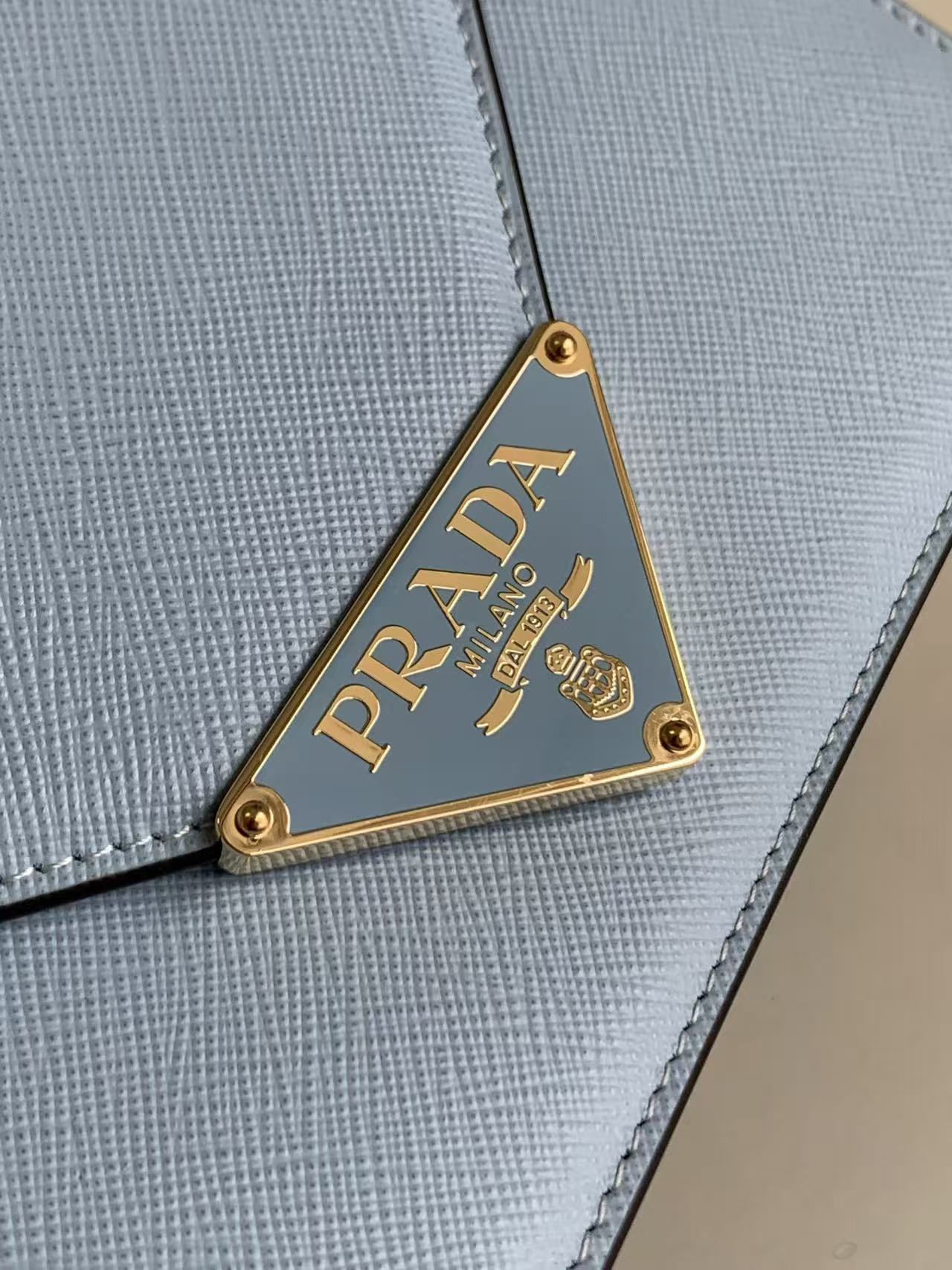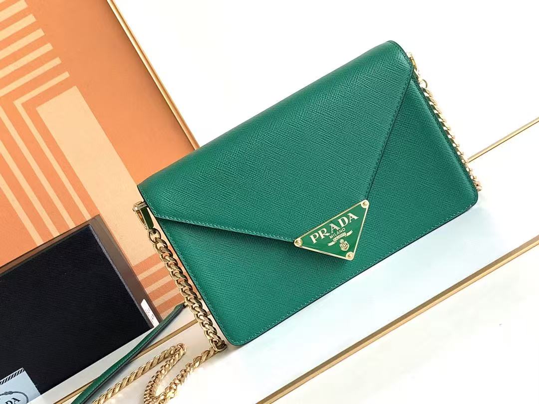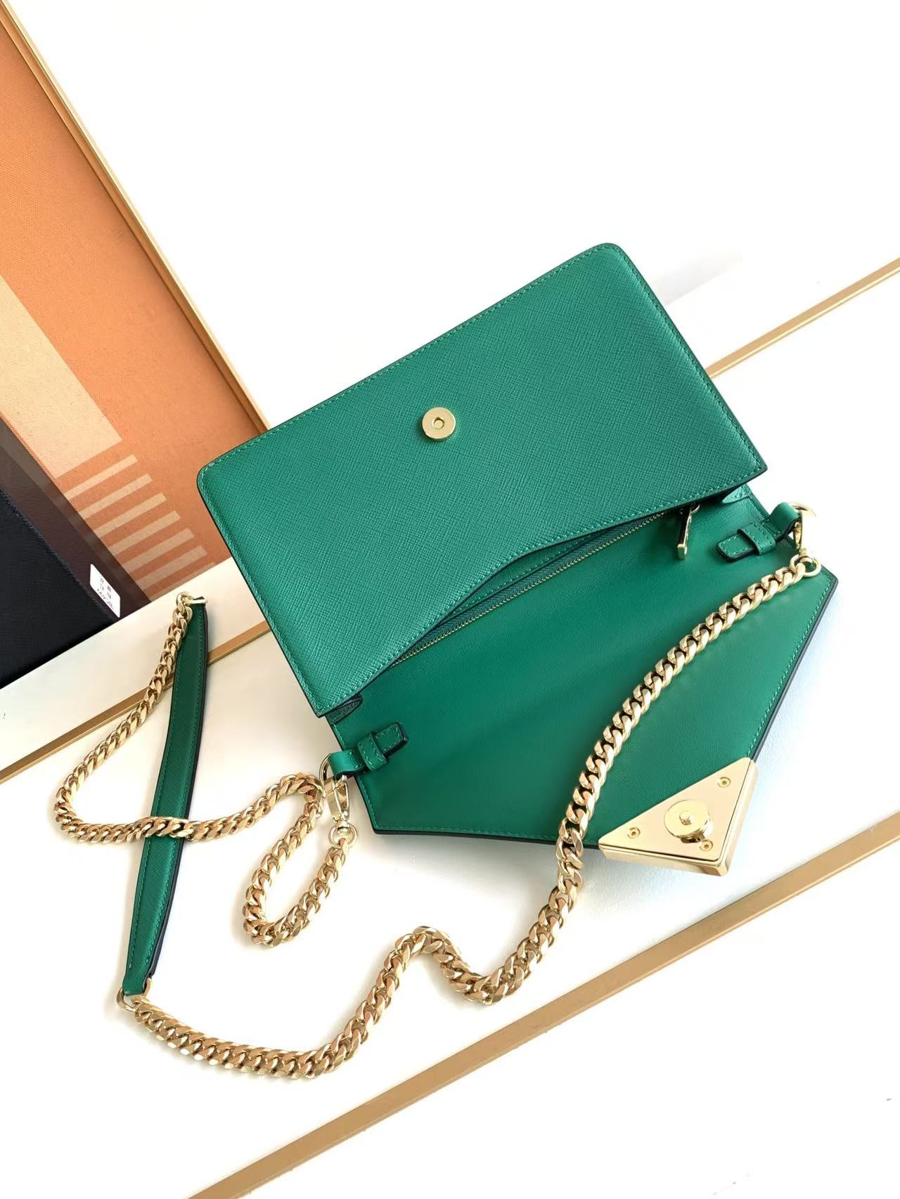 This flap shoulder bag is crafted from Saffiano leather and lined with soft lambskin. Showcasing exquisite craftsmanship, its elegant design is on full display. The flap features an enamel-coated metal triangular logo at the tip. Comes with a detachable long shoulder strap, and can also be used as a clutch 😘😘 Refined and charming, simple yet sophisticated—a must-have.