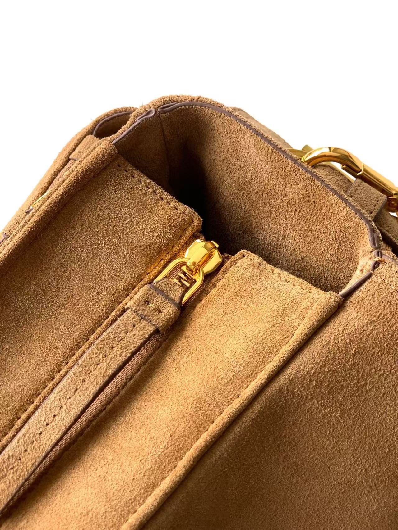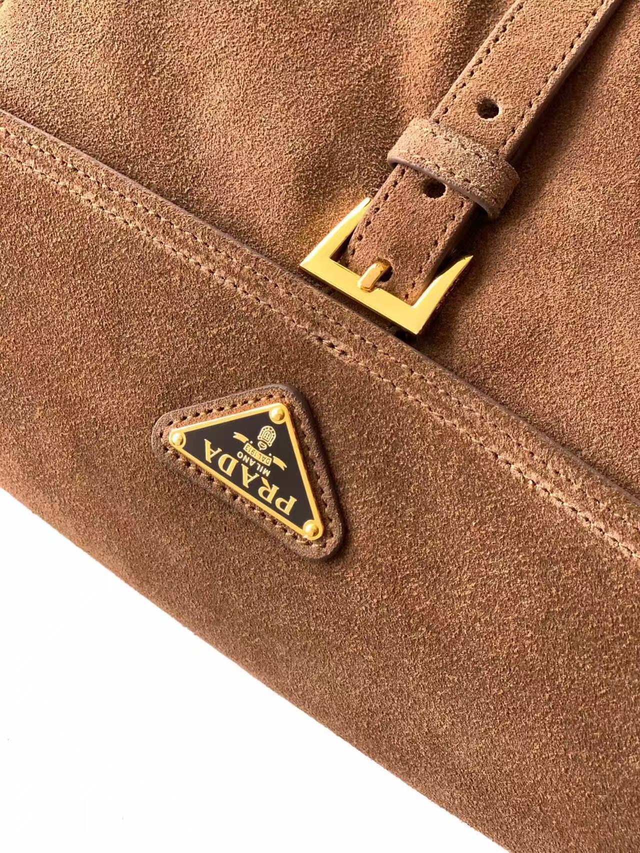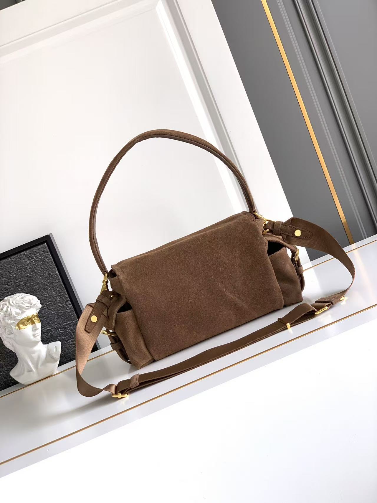 This handbag perfectly combines refinement and functionality. Crafted with imported suede for a soft silhouette, it features multiple pockets. The lightweight and practical design incorporates sporty and versatile elements, adorned with an enameled triangular metal logo and leather detailing. It comes with 2 detachable shoulder straps, offers ample capacity, and is absolutely perfect—another timeless hit. The large size is suitable for both men and women. Grab it quickly 🎉🎉!