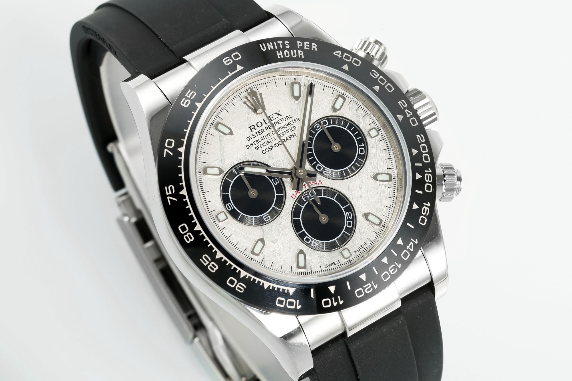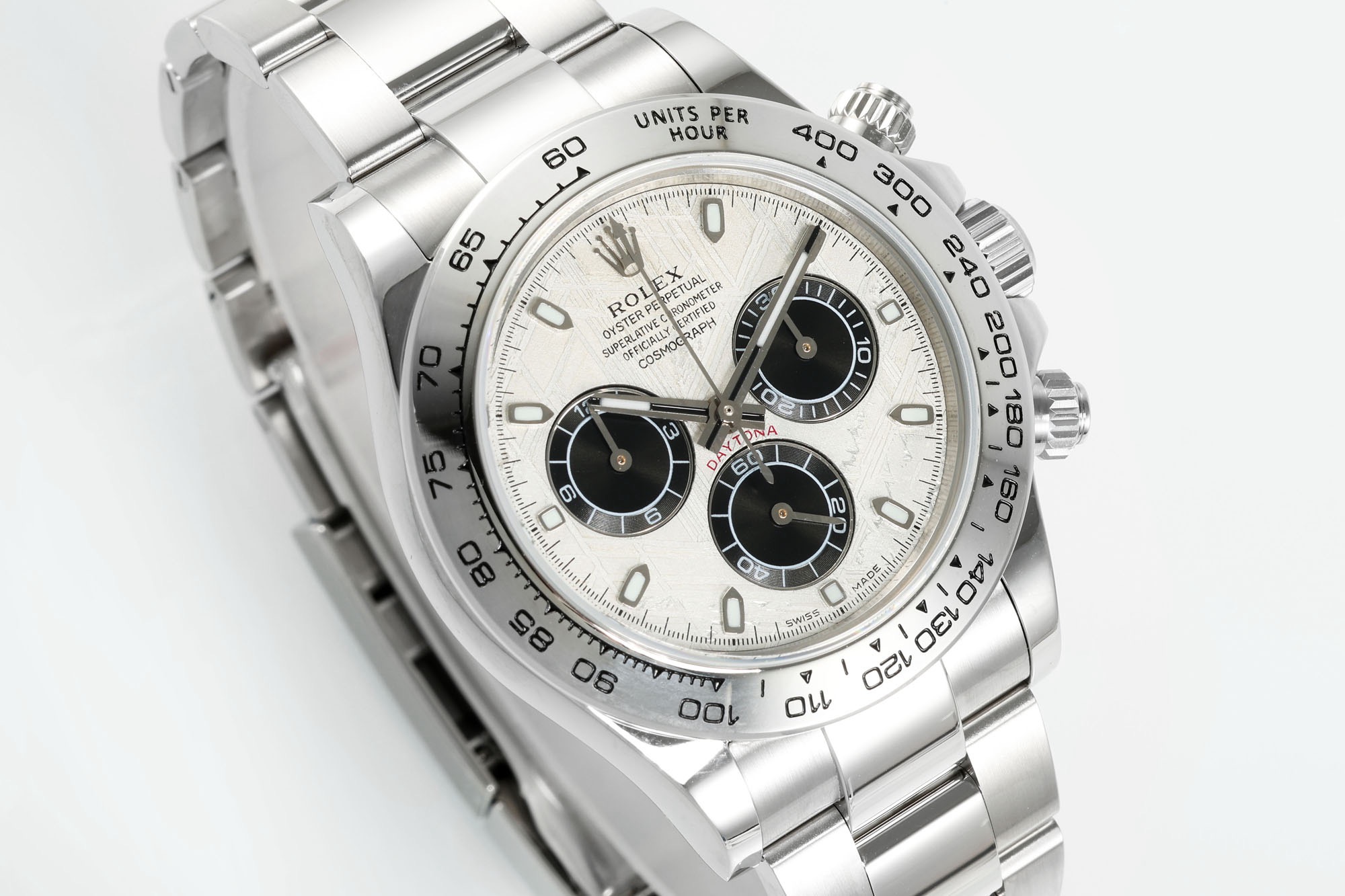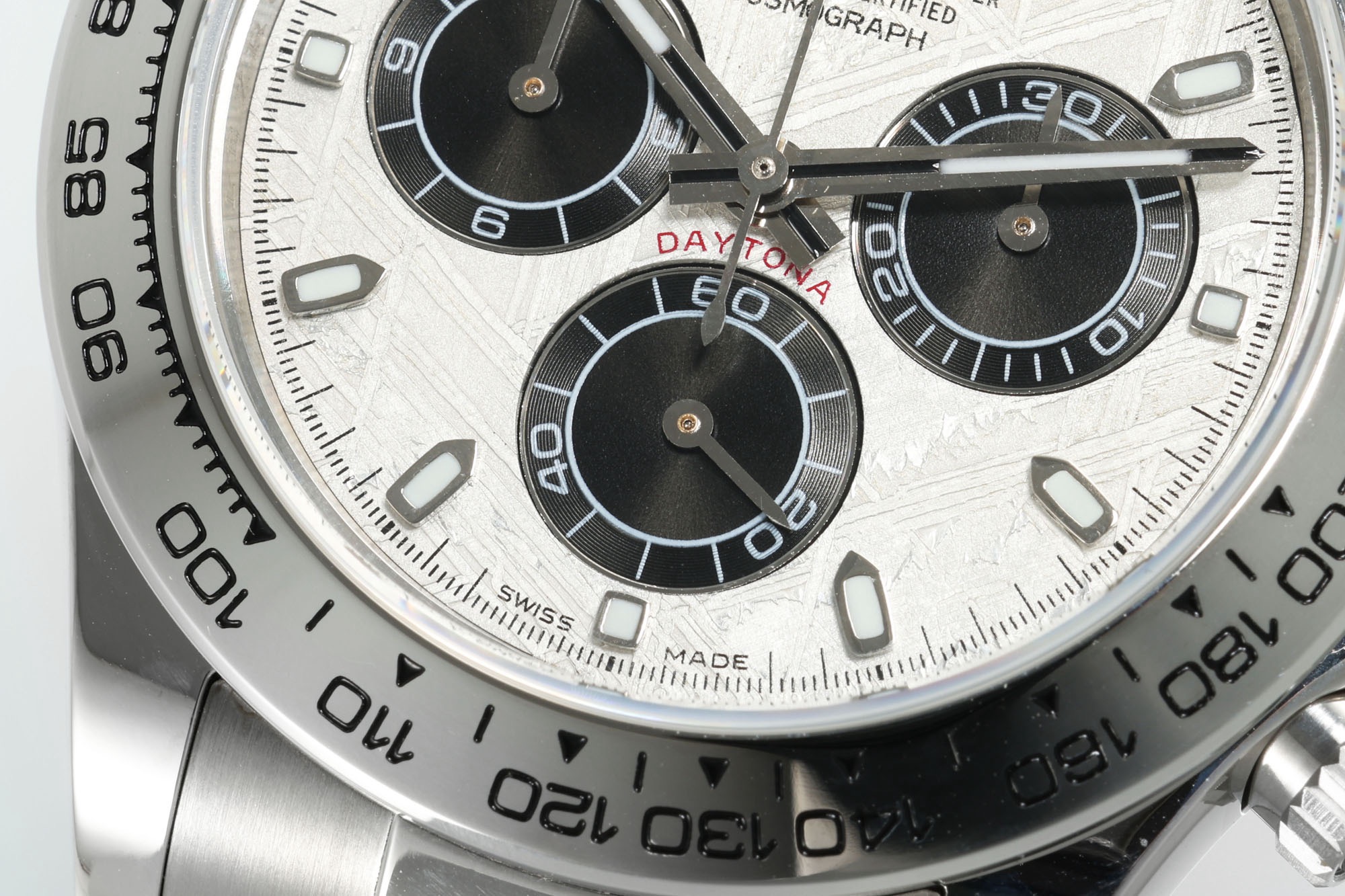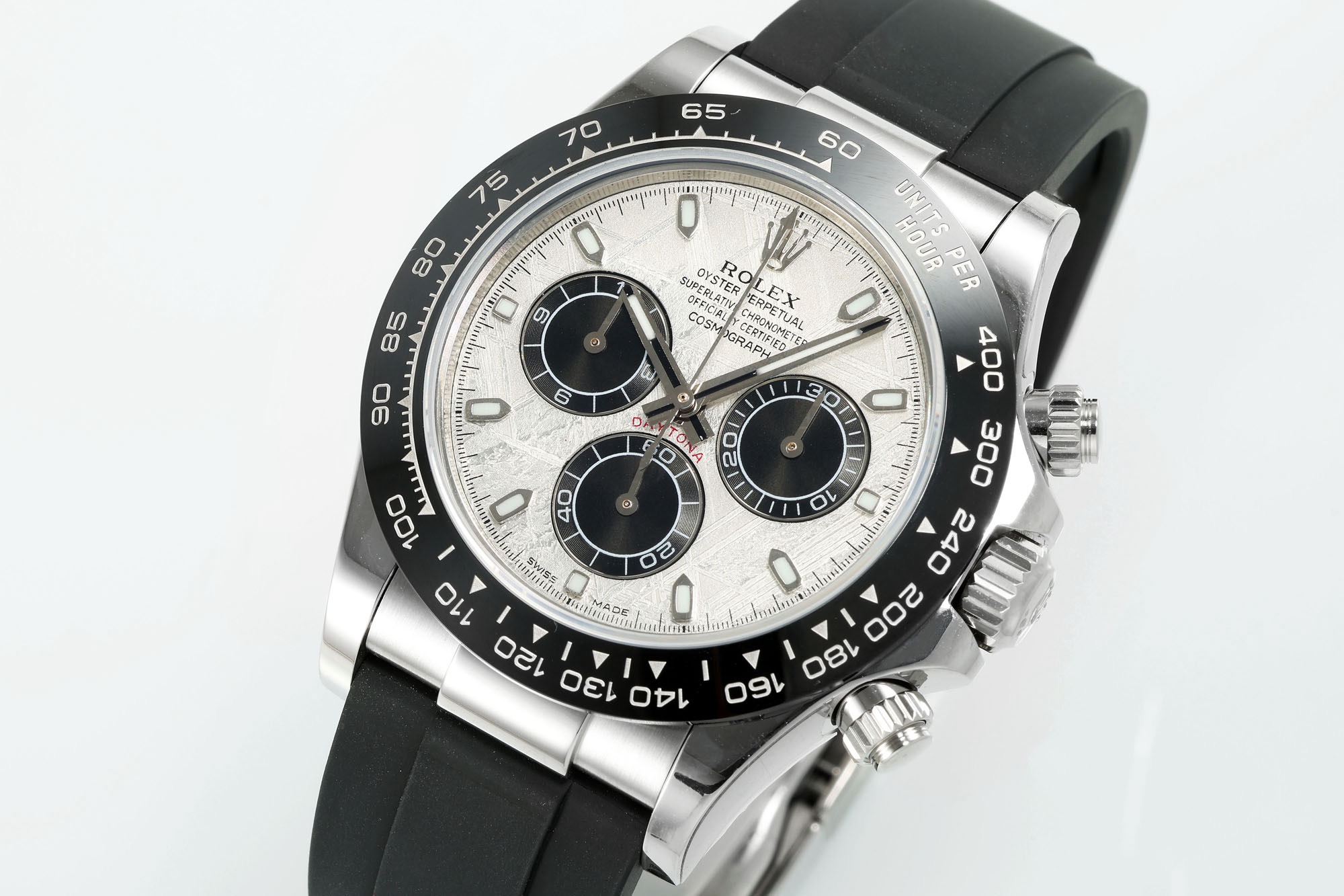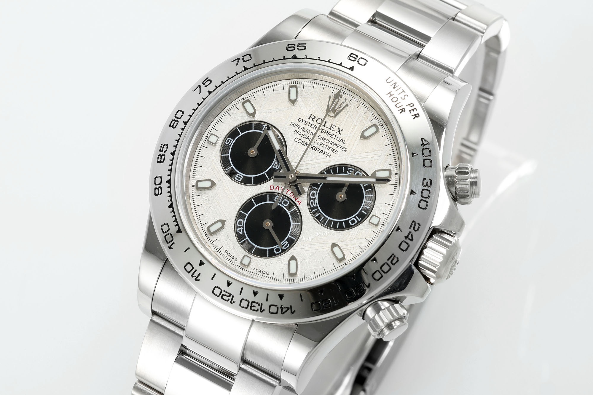 N6 Factory New Product: Super Quality and Cost-Effective Daytona Meteorite Dial Series ① Equipped with Dandong genuine 4130 movement, all functions are synchronized with the authentic one. One gear, clockwise time adjustment, full chronograph functions. ② Thickness: 12.4mm, perfectly matches the original (glass height is synchronized with the original). ③ Top-quality C case, bracelet and clasp accessories are all made of real 904L stainless steel. ④ Top-quality C bezel, resistant to corrosion and fading. Polished hands with solid central axis and applied hour markers. ⑤ Genuine meteorite dial. High quality, high cost performance, highly recommended as a sincere work❗