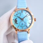 The watch is also paired with an understatedly elegant Italian calfskin leather strap. Its graceful and delicate design makes it an excellent choice for daily wear.