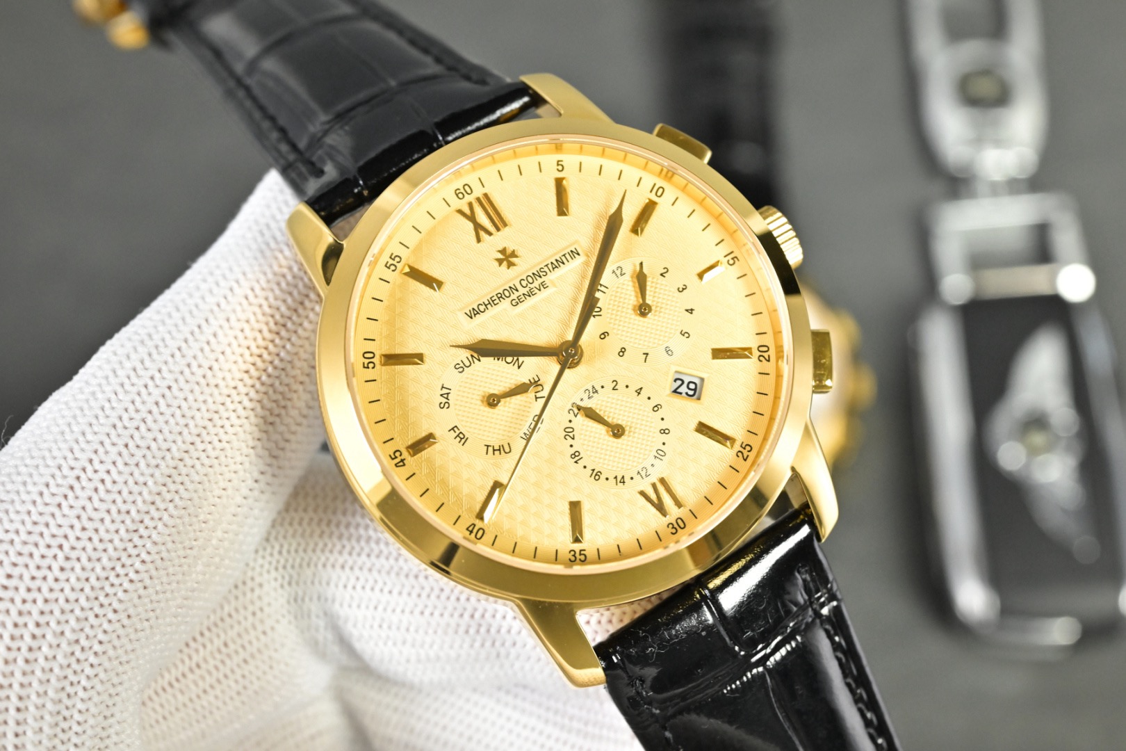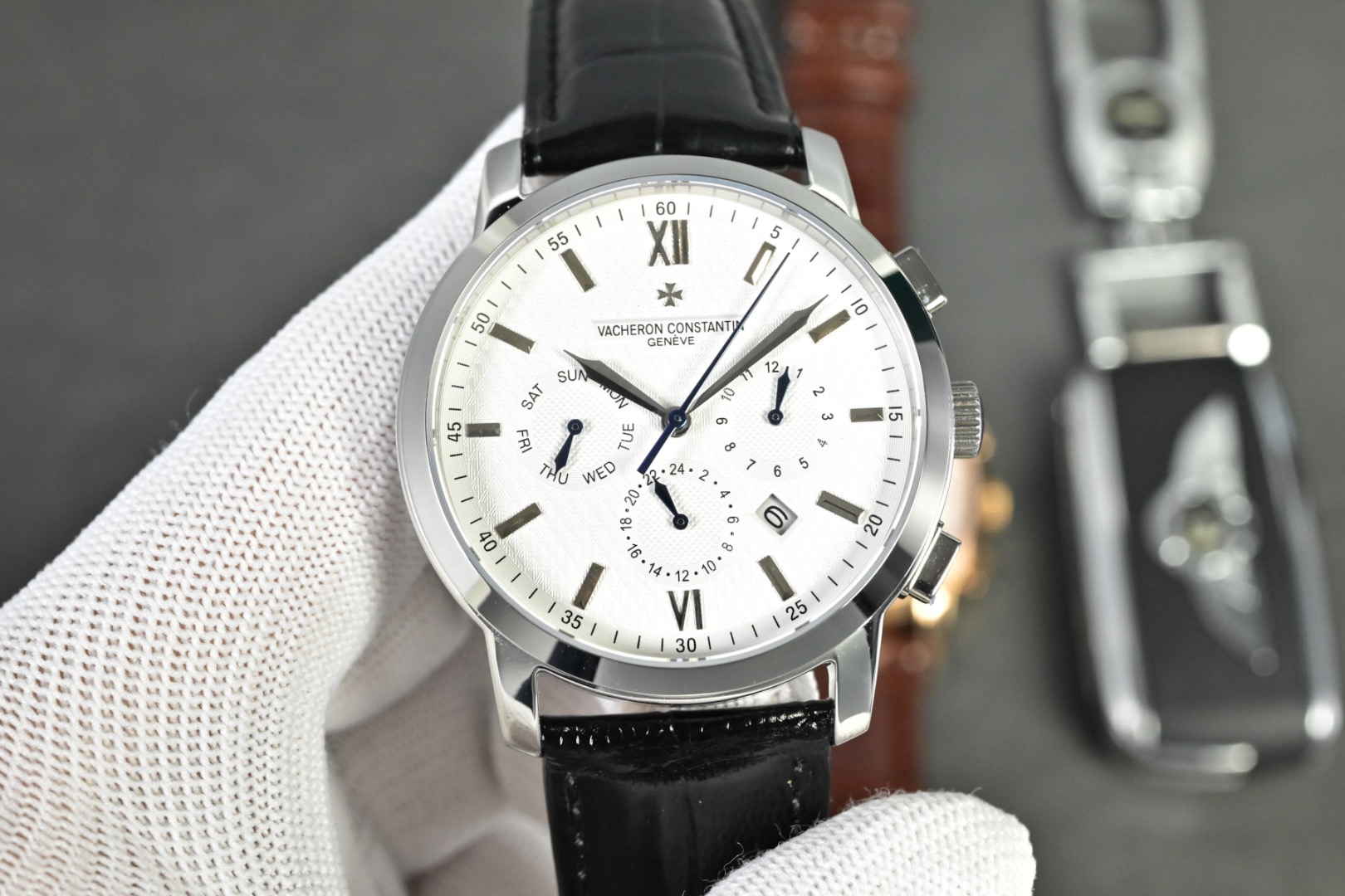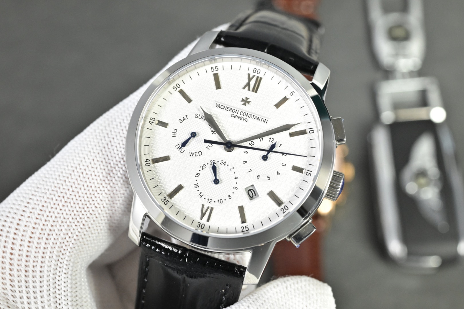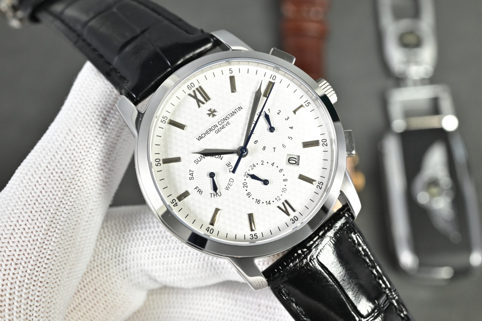 Vacheron Constantin A Noble Work of Art! Equipped with an imported 9100 multifunctional movement (0 returns). Functions: 24-hour display, day, month. Made with imported 316 stainless steel! Paired with Italian imported calfskin leather strap! Original butterfly clasp. Dimensions: 42mm. Scratch-resistant sapphire crystal glass! Water-resistant up to 50 meters!