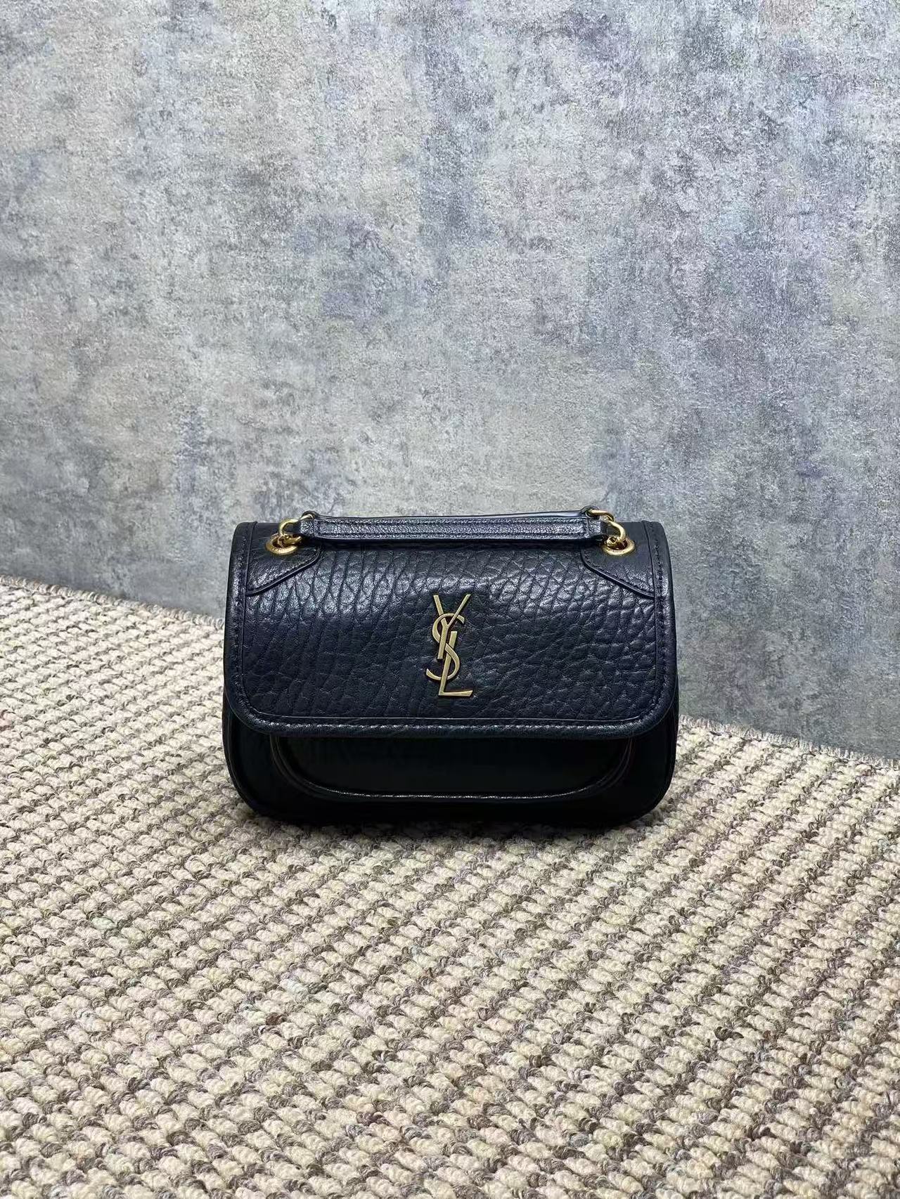 YSL Black Gold New Mini Niki in Elephant Embossed