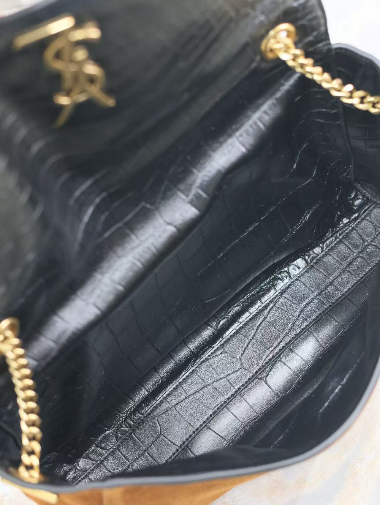 YSL Kate Reversible Suede & Crocodile Embossed Leather Bag