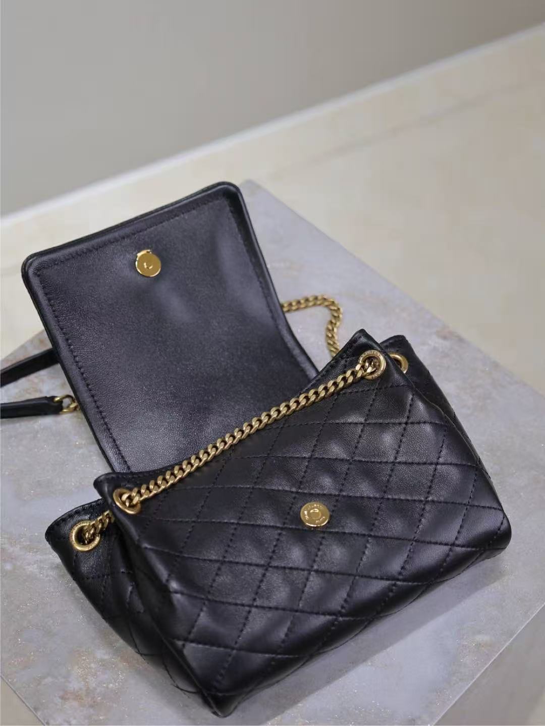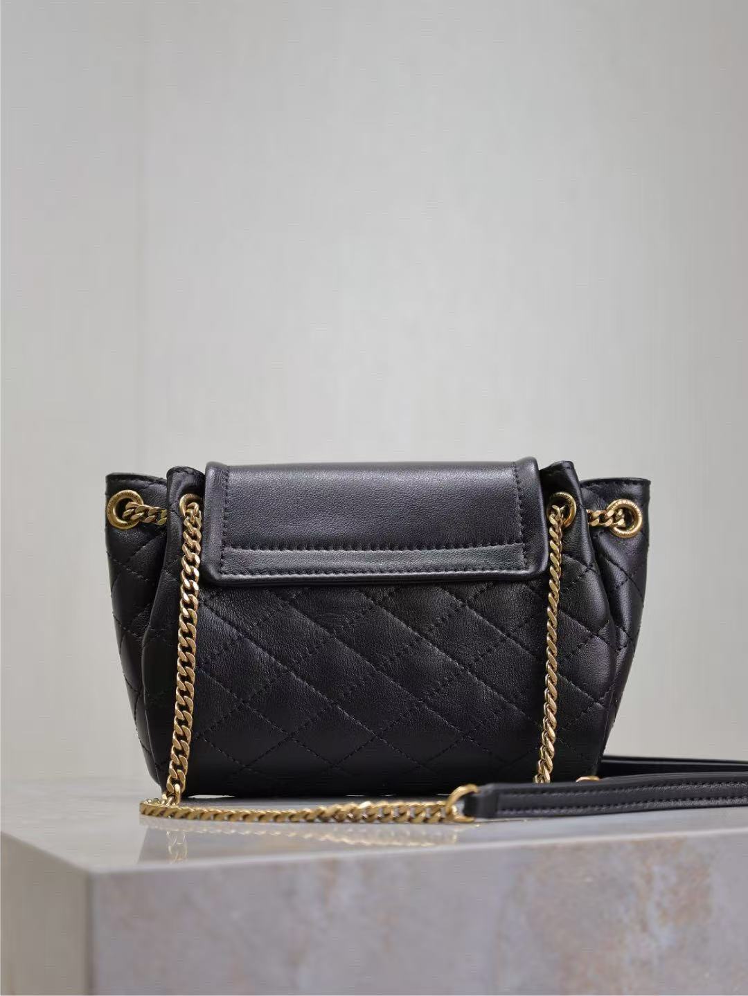 Metallic letter logo with gold chain and leather strap, switch freely between shoulder, crossbody and underarm styles!